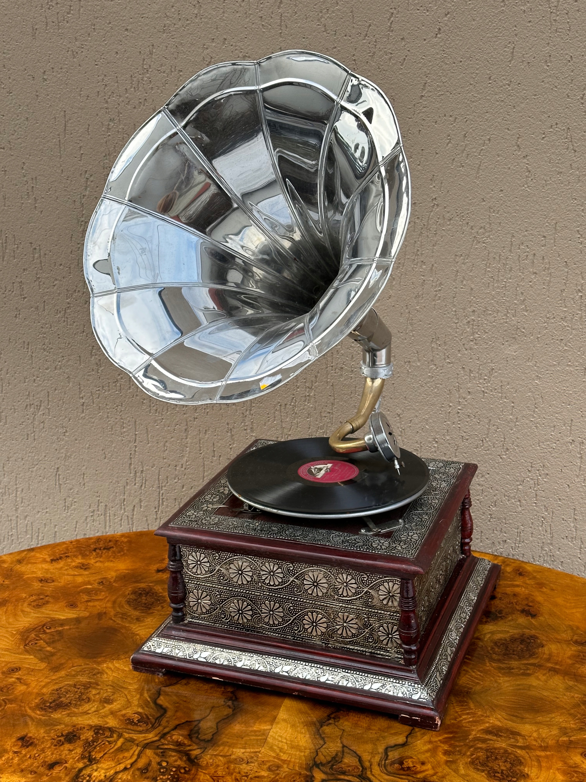 GRAMOFON PATEFON KWADRAT Z MOSIĄDZEM GŁADKA TUBA