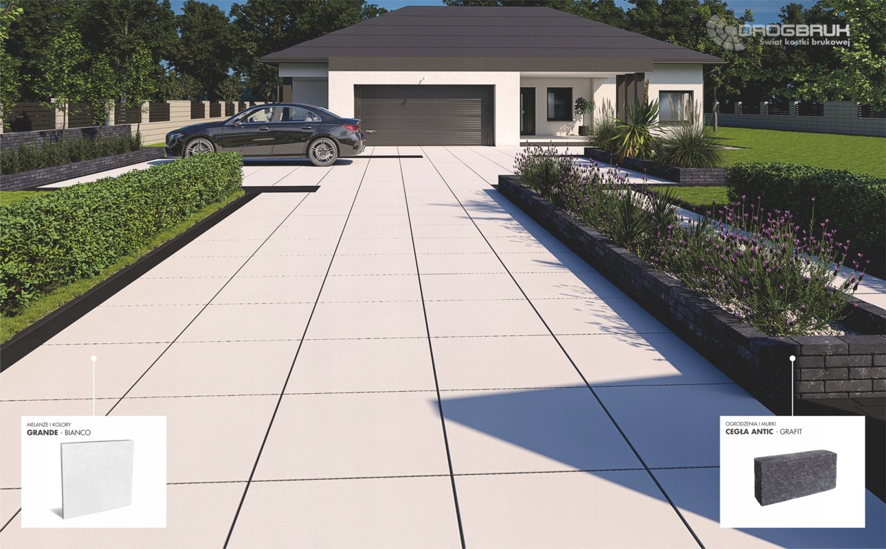 альбом Grande ідеально вписується в сучасний, мінімалістичний стиль сучасних будинків. Його геометричні форми, потужний розмір та цікаві відтінки сірого та пастелі в поєднанні з іншими кубиками, терасою плитами або садовими каменями дозволять створити складні композиції домашніх просторів, проїжджих шляхів, терас та садів.