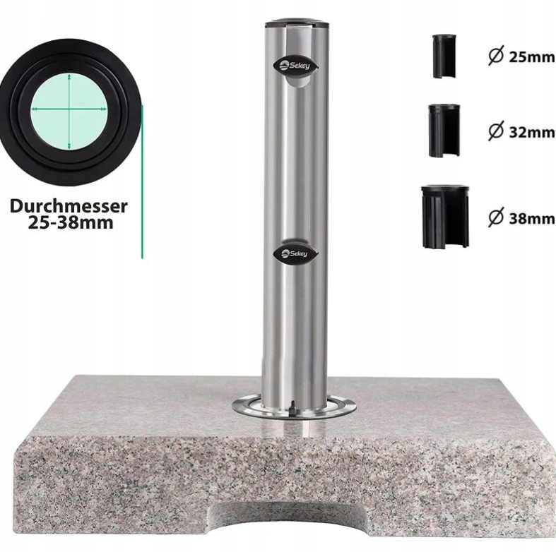 • Широкий діапазон застосувань : підходить для парасольок з довжиною менше 3 метрів і діаметром посади від 22 до 38 мм. Підходить для садів, терас та балконів.