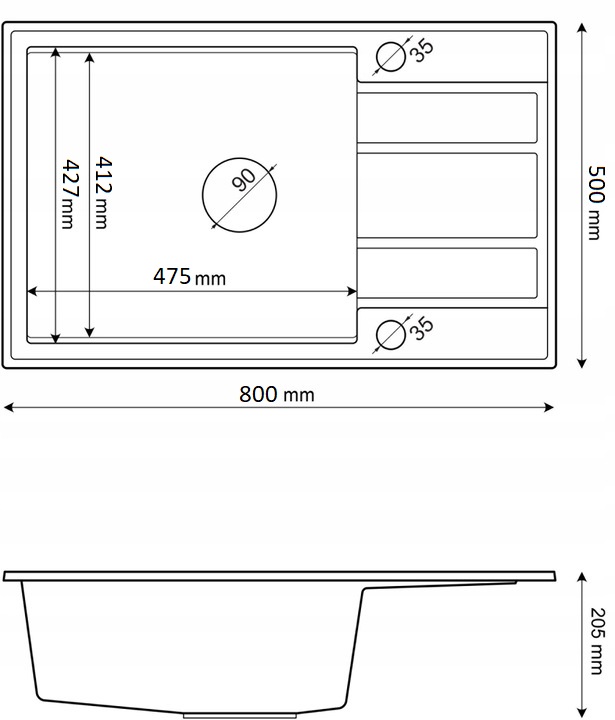 Одночашкова гранітна мийка зі зливним краном, мінімалістична форма якої не перевантажує інтер’єр. Симетрична форма раковини надає їй дуже естетичний вигляд, а якість виконання підвищує комфорт під час щоденного використання.