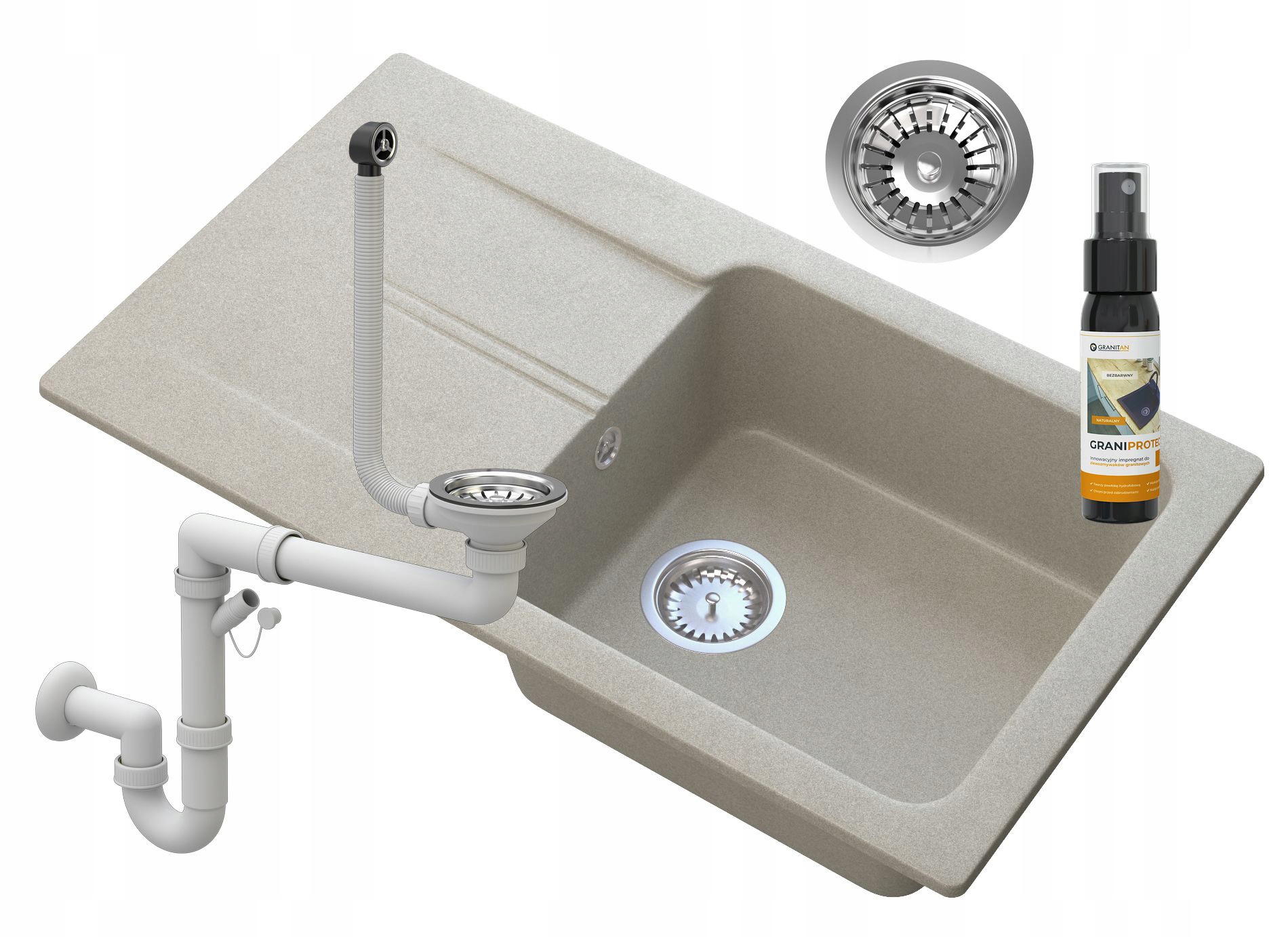 Гранітна раковина з зливним бежевим сифонним хром Taasos