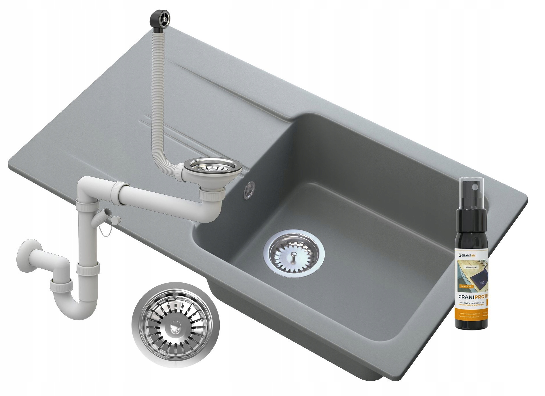 Гранітна раковина з зливним сірим сифон