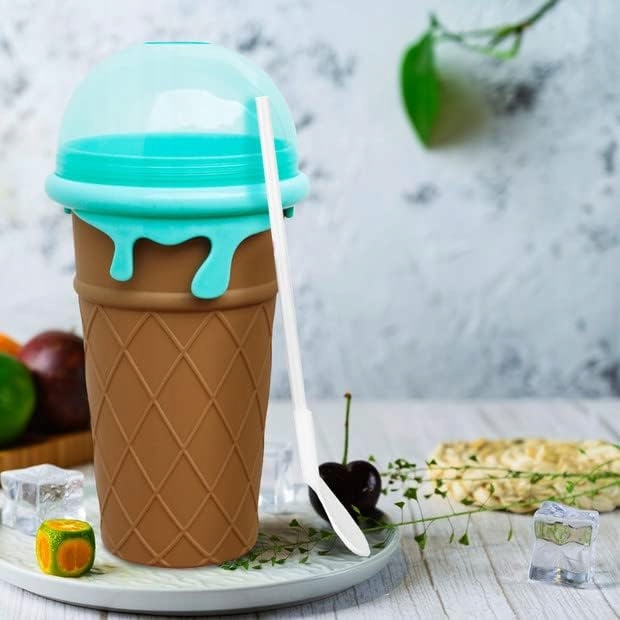 1. Переконайтеся, що чашки морозива повністю заморожені, перш ніж приготувати крижану сльоту. Потім налийте в чашку напоїв, соки або лимонади.