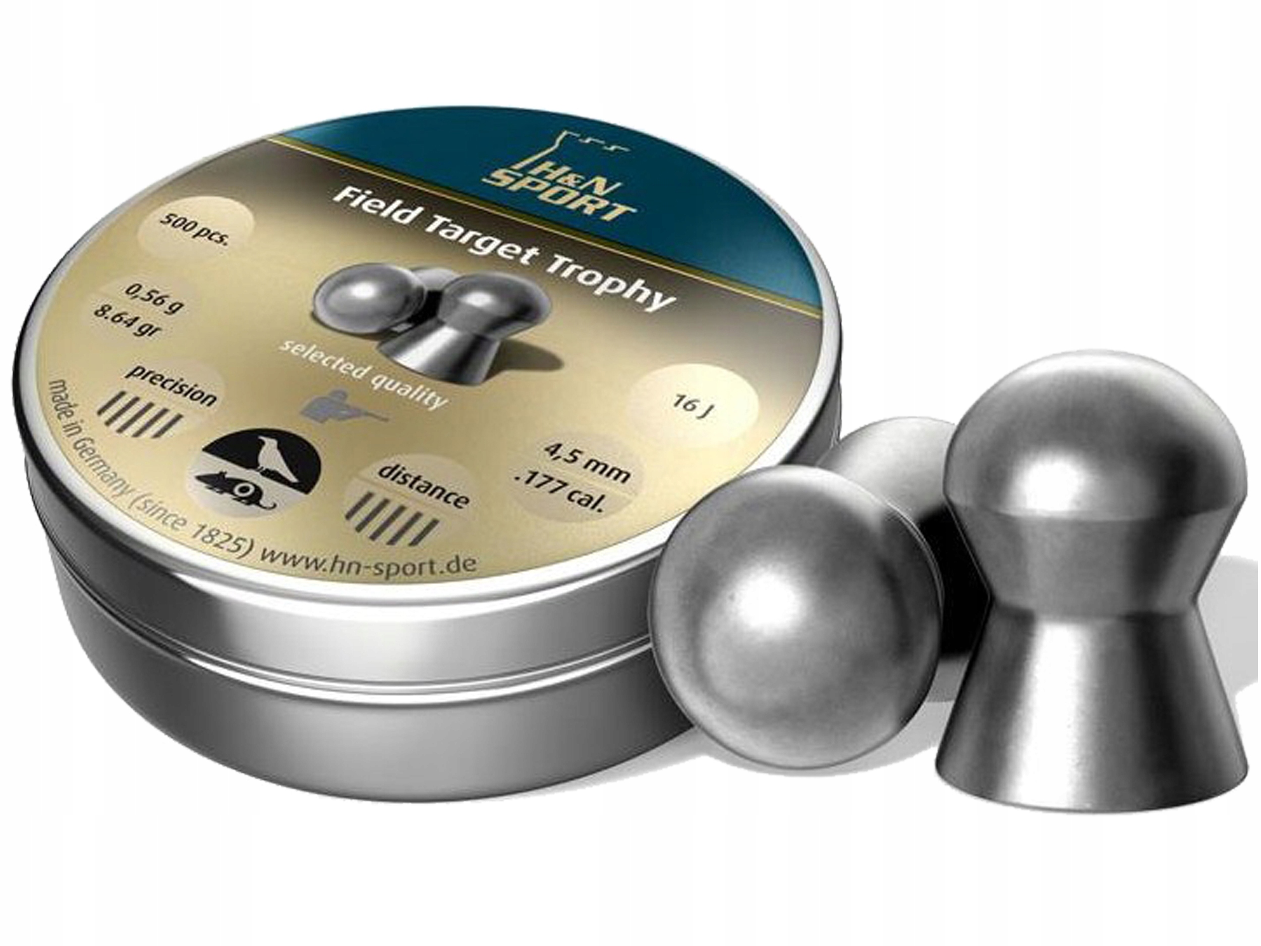 Пулі H&N Field Target Trophy 4.5mm 500шт - найякісніші, точні кульки від німецького виробника H&N Sport, призначені для професійної спортивної стрільби. Гранули середньої важкості, гладкі, округлі, з краєм. Характеризується високою точністю і меншою чутливістю до вітру. Виготовлений з рафінованого свинцю з домішкою затверджувачів (іридію), додатково сортований вручну.