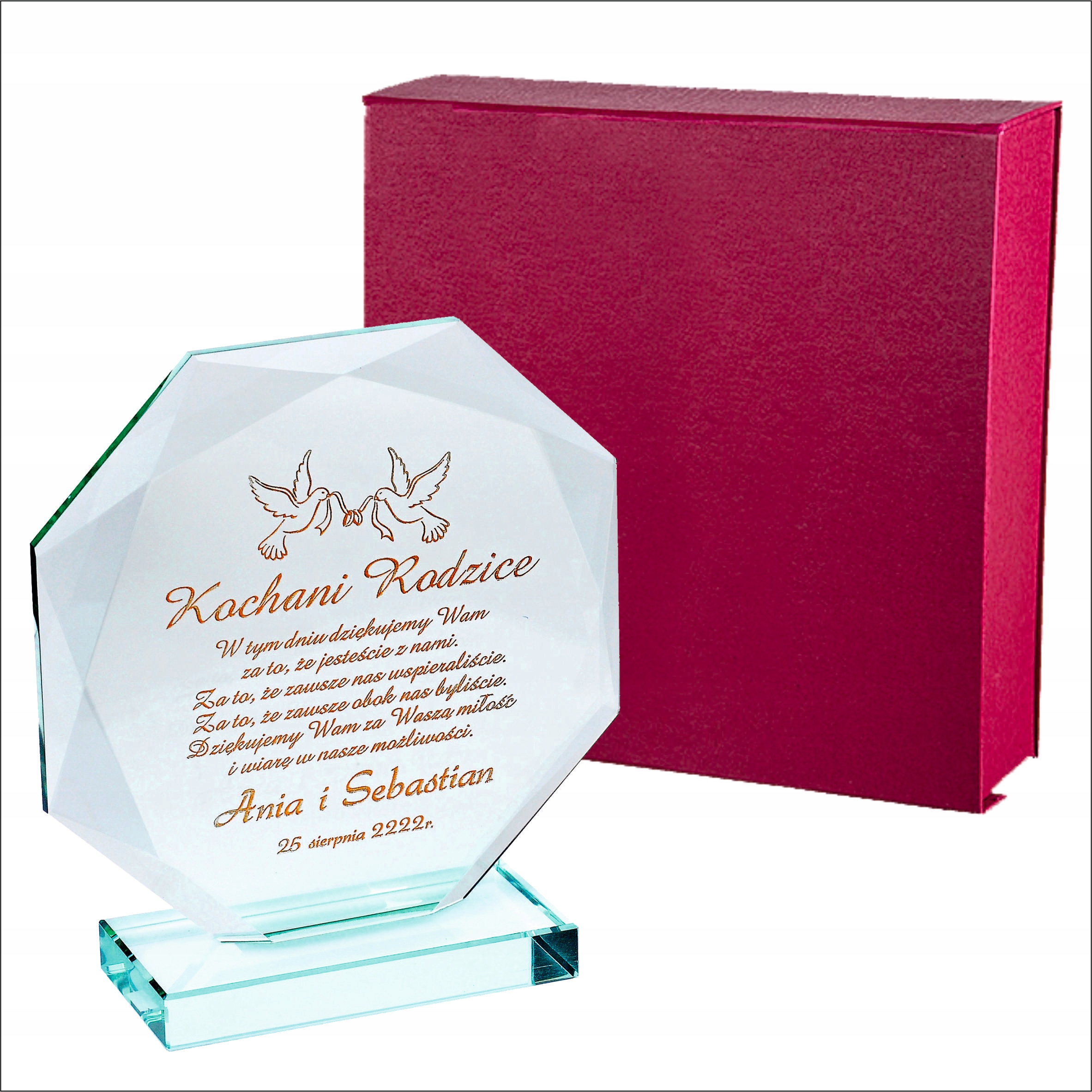 Красива подяка виготовлена за допомогою технології лазерного гравіювання безпосередньо на предметі. Скляна статуетка виглядає чудово завдяки інноваційній формі, а завдяки вирізам створює незабутнє естетичне враження. Встановлений на міцну основу з такого ж матеріалу, які міцно з'єднані між собою, він неодмінно запам'ятається одержувачу. Крім того, гравіювання наноситься майстром вручну і дуже акуратно спеціальною фарбою. Позолота/срібло переливається на світлі та дає дивовижний ефект. Ви більше ніде не знайдете такої високої якості. Можу зробити для вас - ПОДАРУНОК НА БУДЬ-ЯКИЙ НАВОД (весілля, гостини, хрещення, причастя, день народження, вісімнадцяти іменини, ювілей, річниця весілля, день матері та батька, день дідуся та бабусі, день Святого Валентина, день вчителя, та ін.). b>