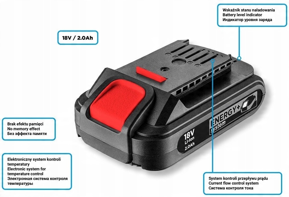 - 58G001Акумулятор ENERGY+ 18V, LI-ION 2.0AH x 2 шт