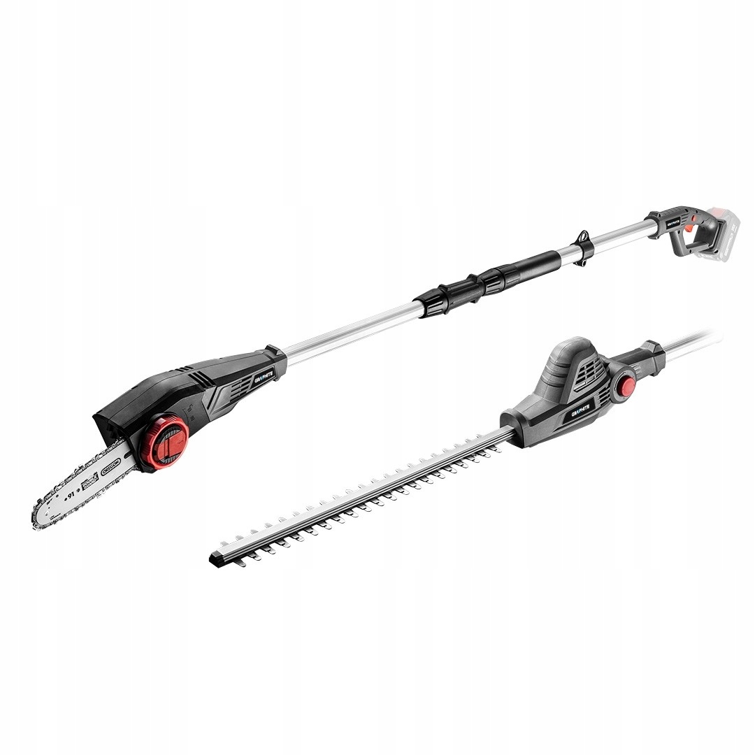 Садовий пристрій 2-в-1 - бензопила та ножиці для живої огорожі Energy+ 18 В, без акумулятора 58G098 фірми GRAPHITE - інструмент на основі системи Energy+. Сумісний з літій-іонним акумулятором 18 В постійного струму (не входить в комплект). Головка бензопили характеризується лінійною швидкістю ланцюга (без навантаження) 8 м/с, напрямною 8" (200 мм), можливістю натягувати ланцюг без інструментів і максимальною робочою довжиною 1,87 м. Головка кущоріза має ширину зрізу 430 мм і може зрізати стебла 15 мм. Максимальна робоча довжина для цього пристрою становить 1,14 м. Ножиці мають швидкість холостого ходу 1300 обертів на хвилину. У комплект також входить практична стріла, яка дозволяє дістатися до вищих рослин, плечовий ремінь, інструкція з експлуатації та гарантійний талон. Бренд GRAPHITE пропонується професіоналам і ентузіастам DIY.