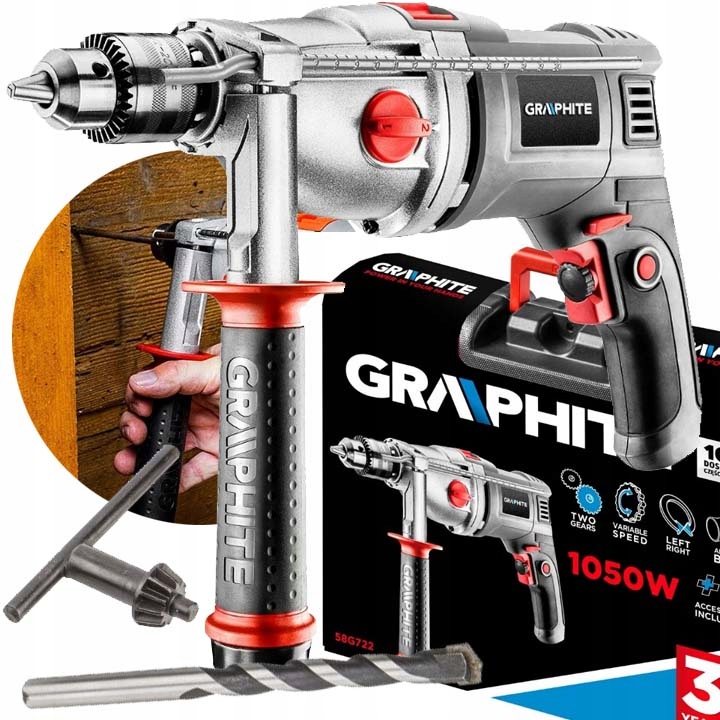 GRAPHITE УДАРНА ГРАФІТОВА ДВОШВИДКІСНА РЕГУЛЮВАННЯ ШВИДКОСТІ 1050 Вт КЕЙС