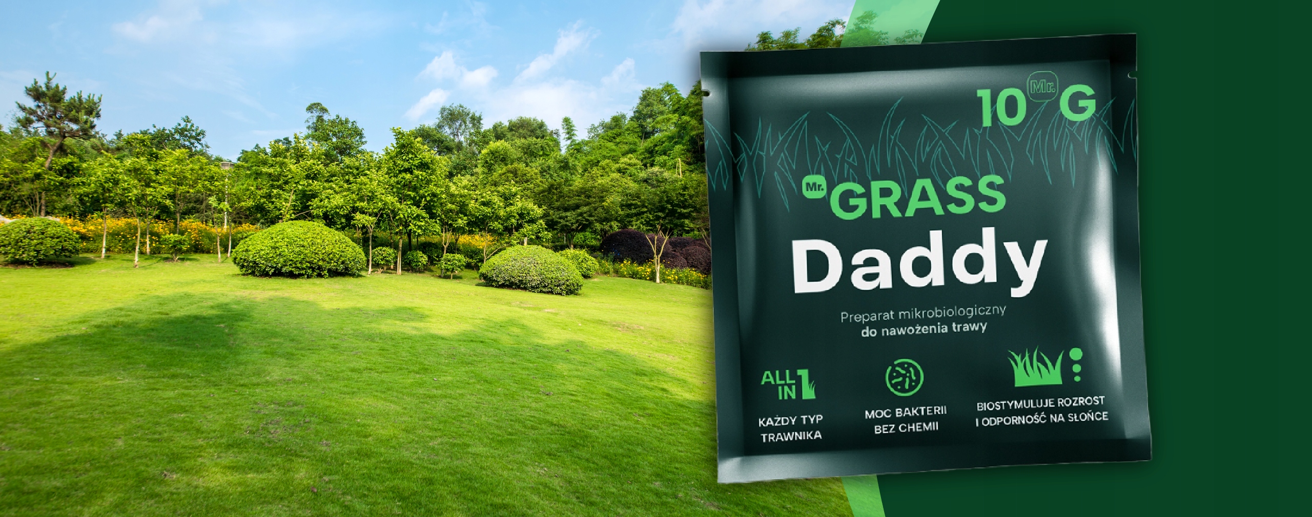 Grass Daddy - це продукт, який містить 3 види бактерій, які стимулюють ріст трави. Збільшуючи поглинання азоту та фосфору, вони змушують траву швидше вкорінюватися та рости густішою, здоровішою та міцнішою (як під землею, так і над землею).