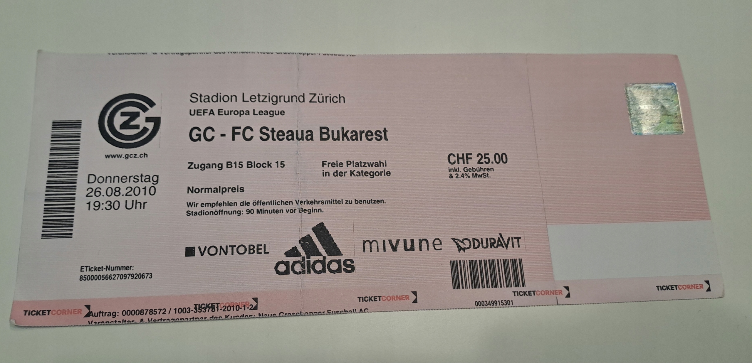 Оплачивая «GRASSHOPPERS ZURICH - ШОА БУХАРЕСТ 26-08-2010», вы можете быть уверены, что данный товар из каталога «Коллекционные билеты» будет доставлен из Польши и проверен на целостность. В цене товара, указанной на сайте, учтена доставка из Польши. Внимание!!! Товары для Евросоюза, согласно законодательству стран Евросоюза, могут отличаться упаковкой или наполнением.