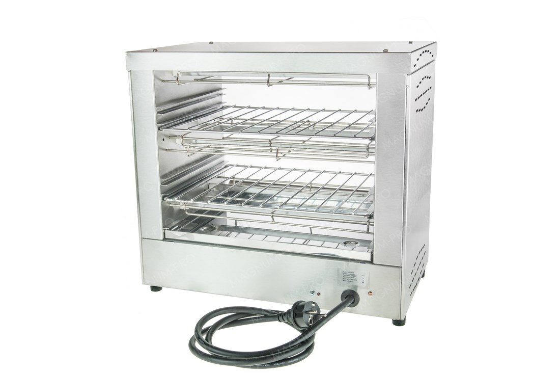 Salamander — це професійний тостер для запіканок, тостів, сендвічів, та ін борошняна та м'ясна продукція, як свіжа, так і заморожена. Ідеально підходить для будь-яких закладів громадського харчування, барів, заправок і т.д. Така піч гарантує смачні та хрусткі страви. Має функцію безперервної роботи, що полегшує роботу під час інтенсивного руху (не потрібно постійно вмикати таймер). Апарат має сертифікат відповідності CE - необхідний для санепідемстанції.