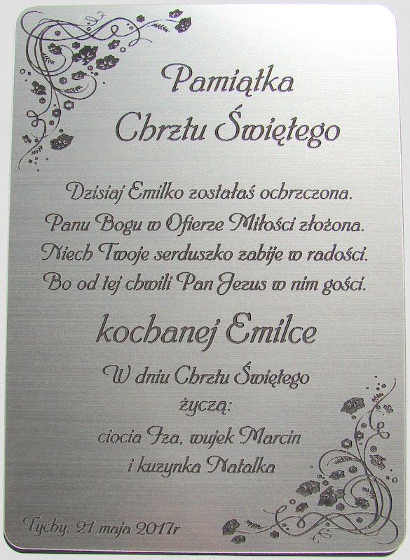 Табличка з гравіюванням – це оригінальна ідея для «оздоблення» подарунка на СВЯТО ХРЕЩЕННЯ, щоб зробити його гарним і довговічним сувеніром.