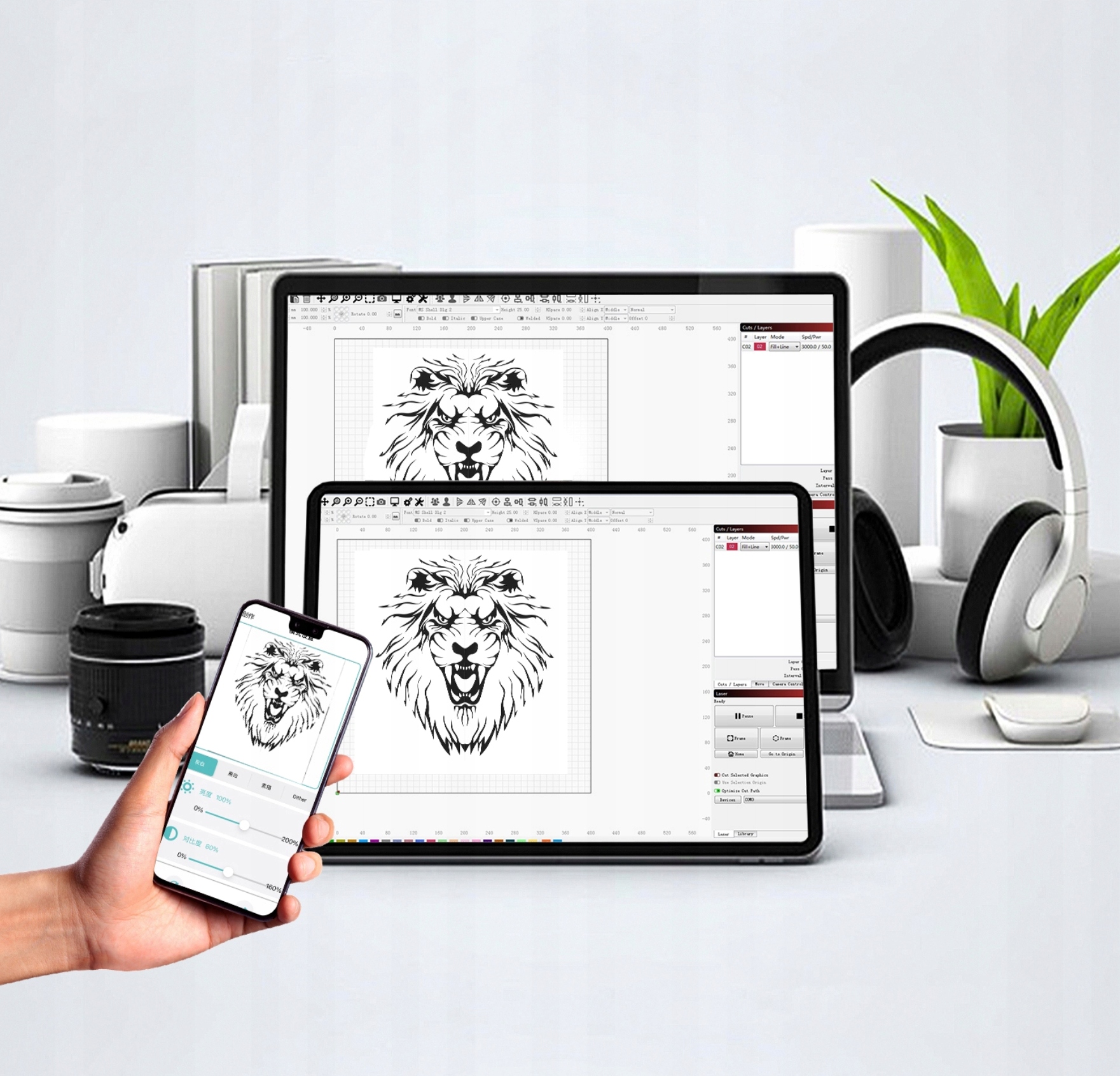 Ця машина сумісна з різними розвиненими програмами для різьблення, такими як LaserGRBL, LightBurn, підтримує Windows 7+, macOS, Linux; Формати файлів для різьблення Підтримуються JPG, PNG, BMP, G-код, GIF, SVG, NC, GC тощо.