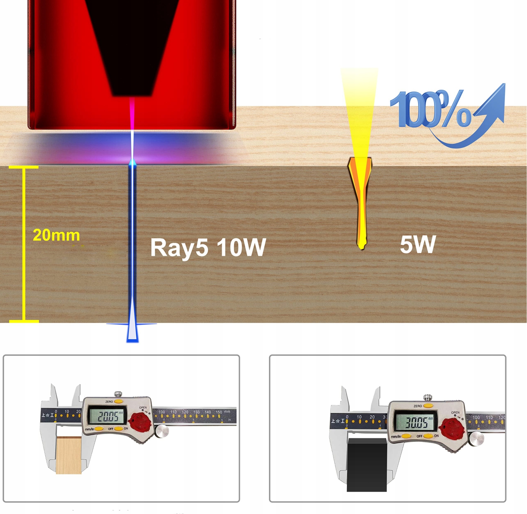 Ray5 використовує новітню стиснуту лазерну технологію, яка генерує надтонку лазерну пляму, вдвічі тоншу за звичайні лазери, що робить різання та гравірування Ray5 більш точним і послідовним, з тоншими лініями, чіткішою текстурою та делікатнішою та красивішою графіка.