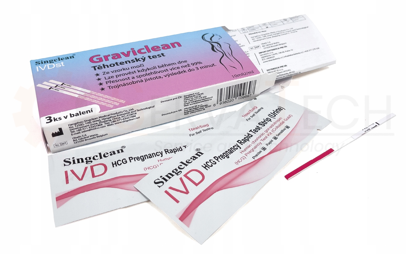 Graviclean — це швидкий тест на вагітність із точністю понад 99% і чутливістю 10 мМО/мл. Він здатний підтвердити вагітність вже із затримкою на один день. Тест працює шляхом визначення наявності хоріонічного гонадотропіну (ХГЛ), який з’являється в сечі на дуже ранніх термінах вагітності. Тест призначений для самотестування в контейнері з сечею (in vitro) і призначений лише для зовнішнього застосування.