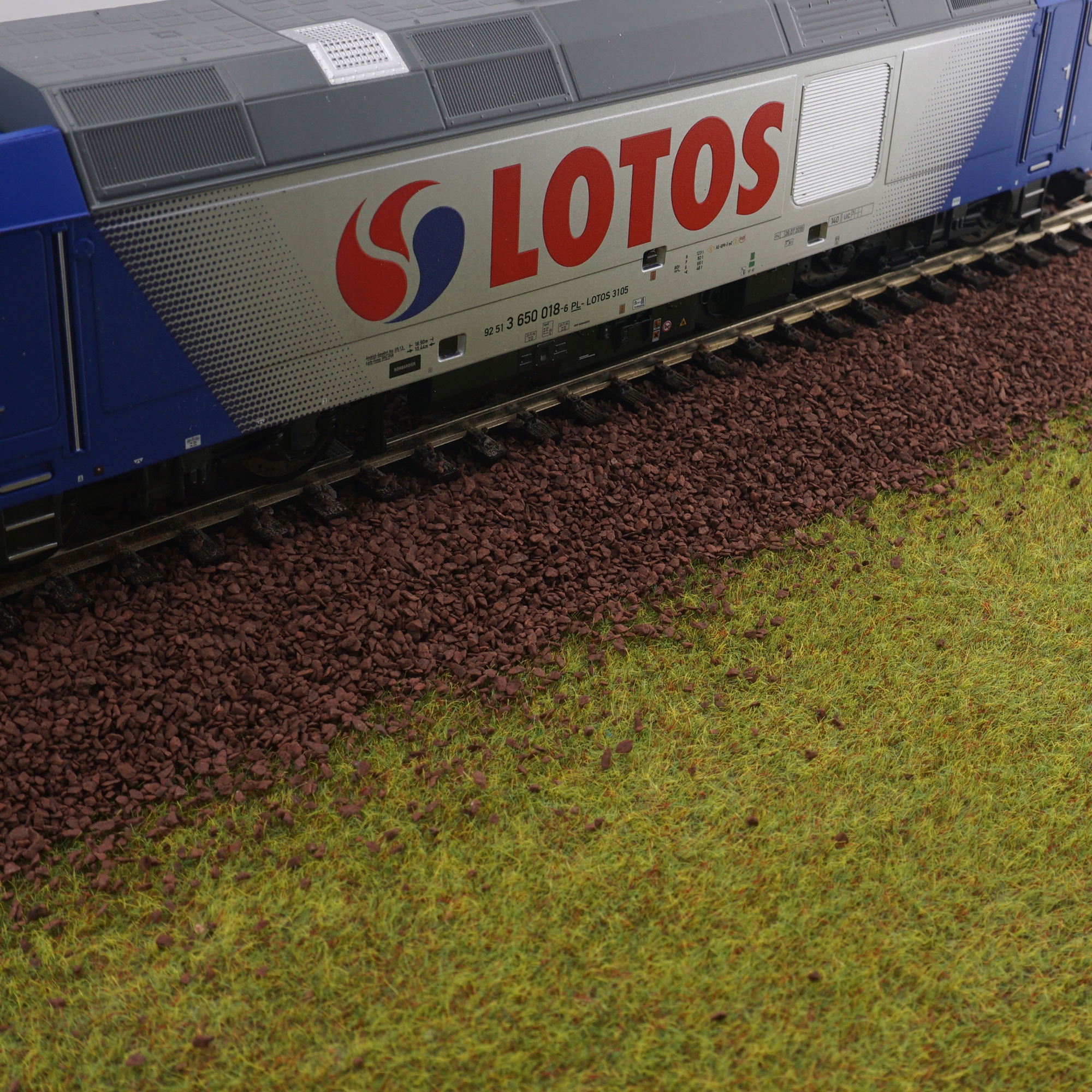 Баласт для моделі залізниці в різних колірних варіантах. Він пухкий, не прилипає ні до себе, ні до основи, не забарвлює підкладку чи інші елементи. Ідеально підходить для прикраси залізничних насипів та інших елементів макетів або діорам. Відтінок гравію може змінитися на темніший після нанесення клею для склеювання гравію. Гравій може забарвлювати інші елементи.