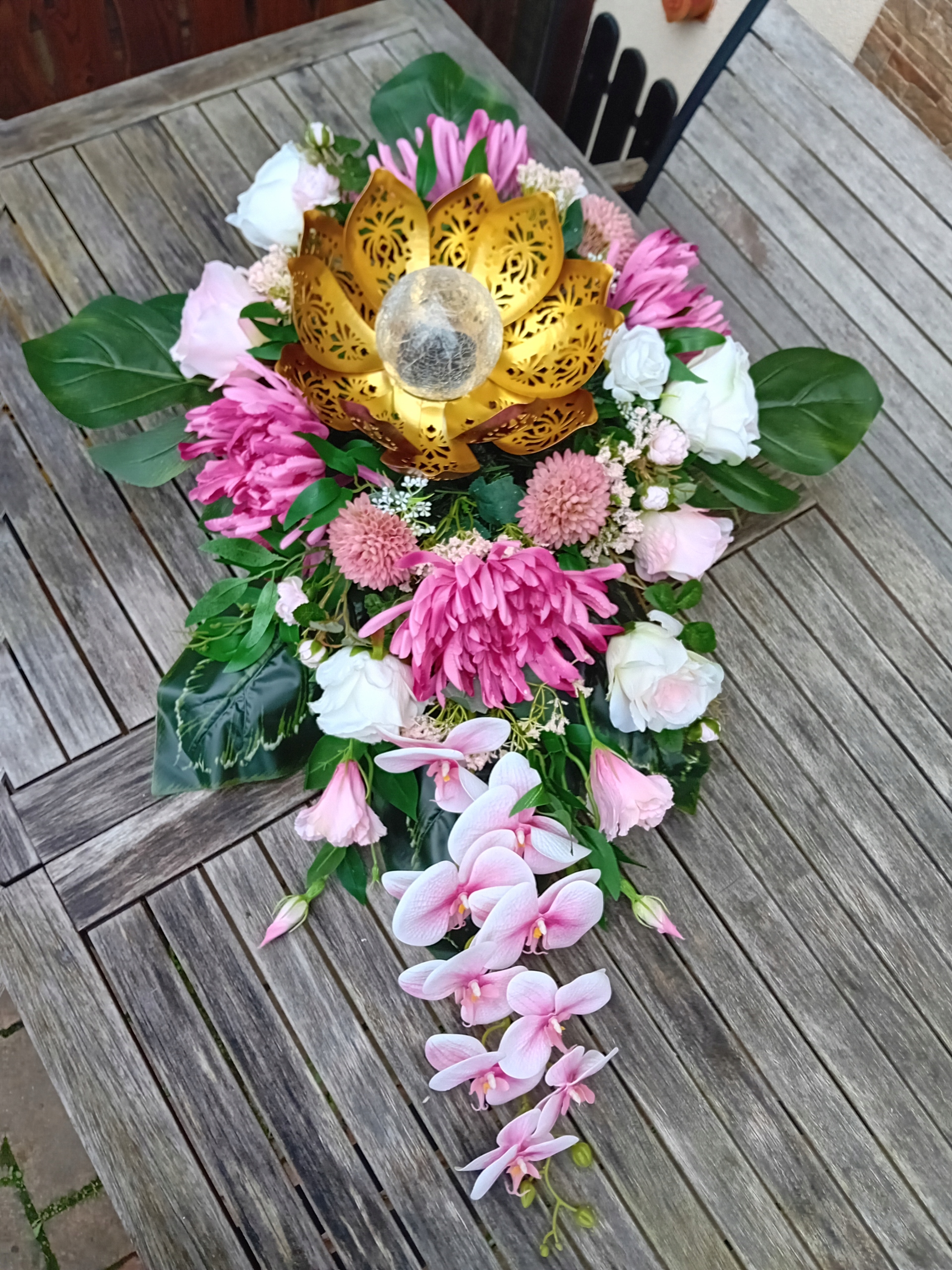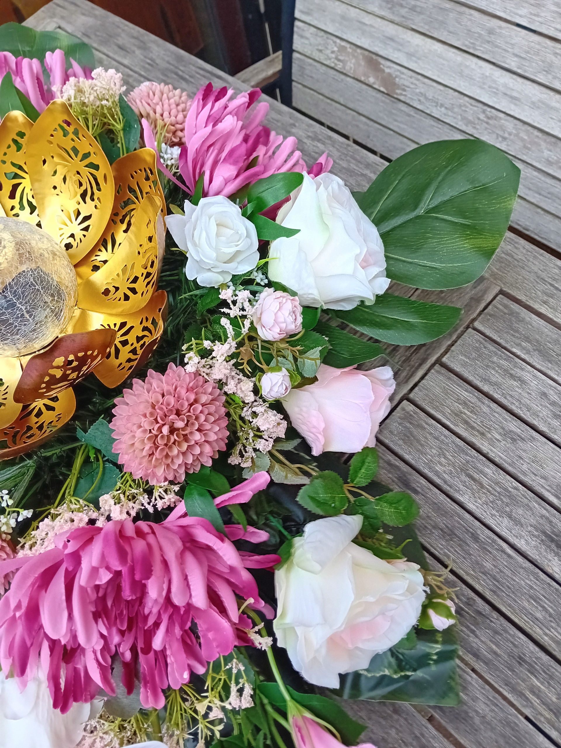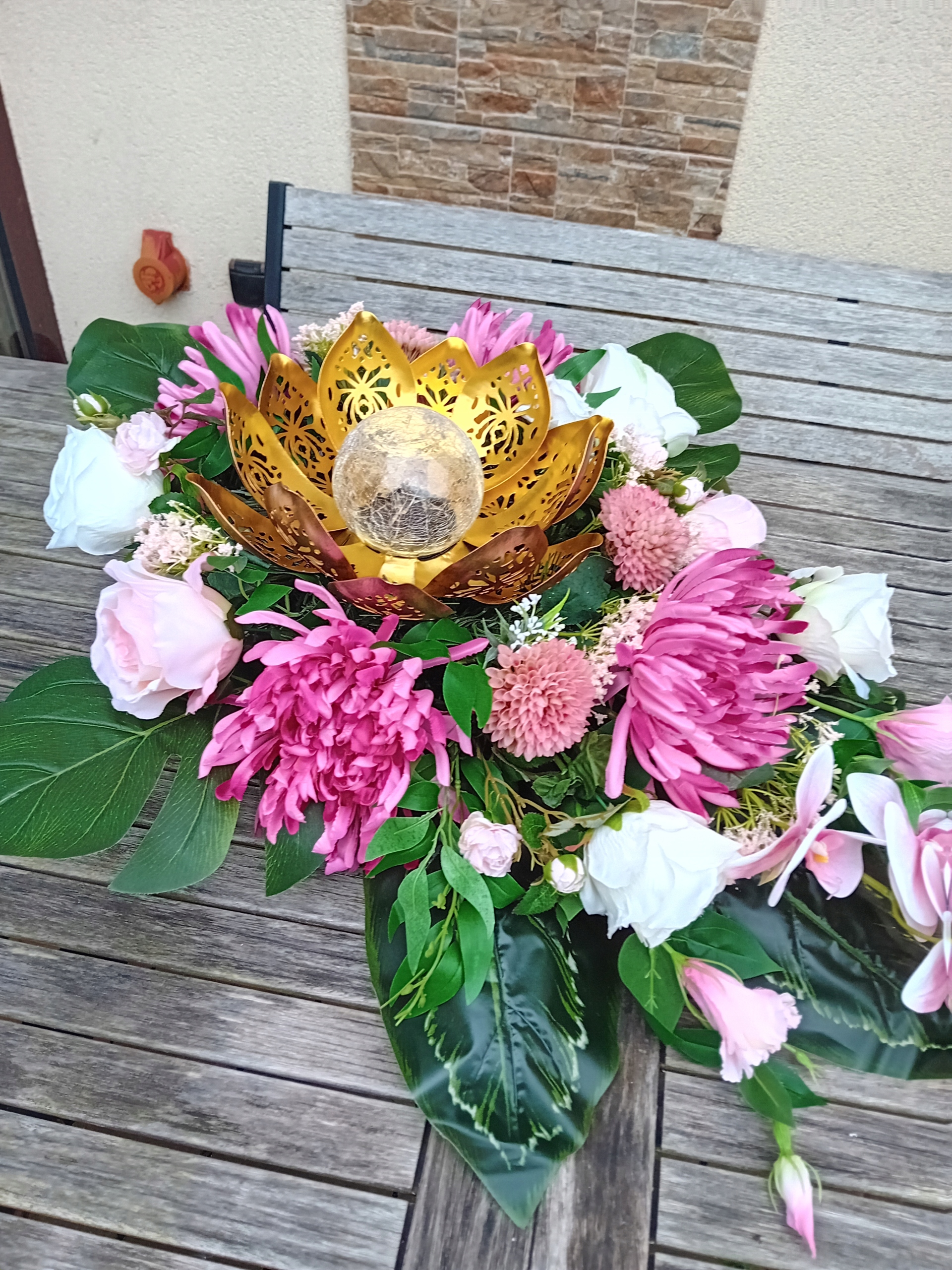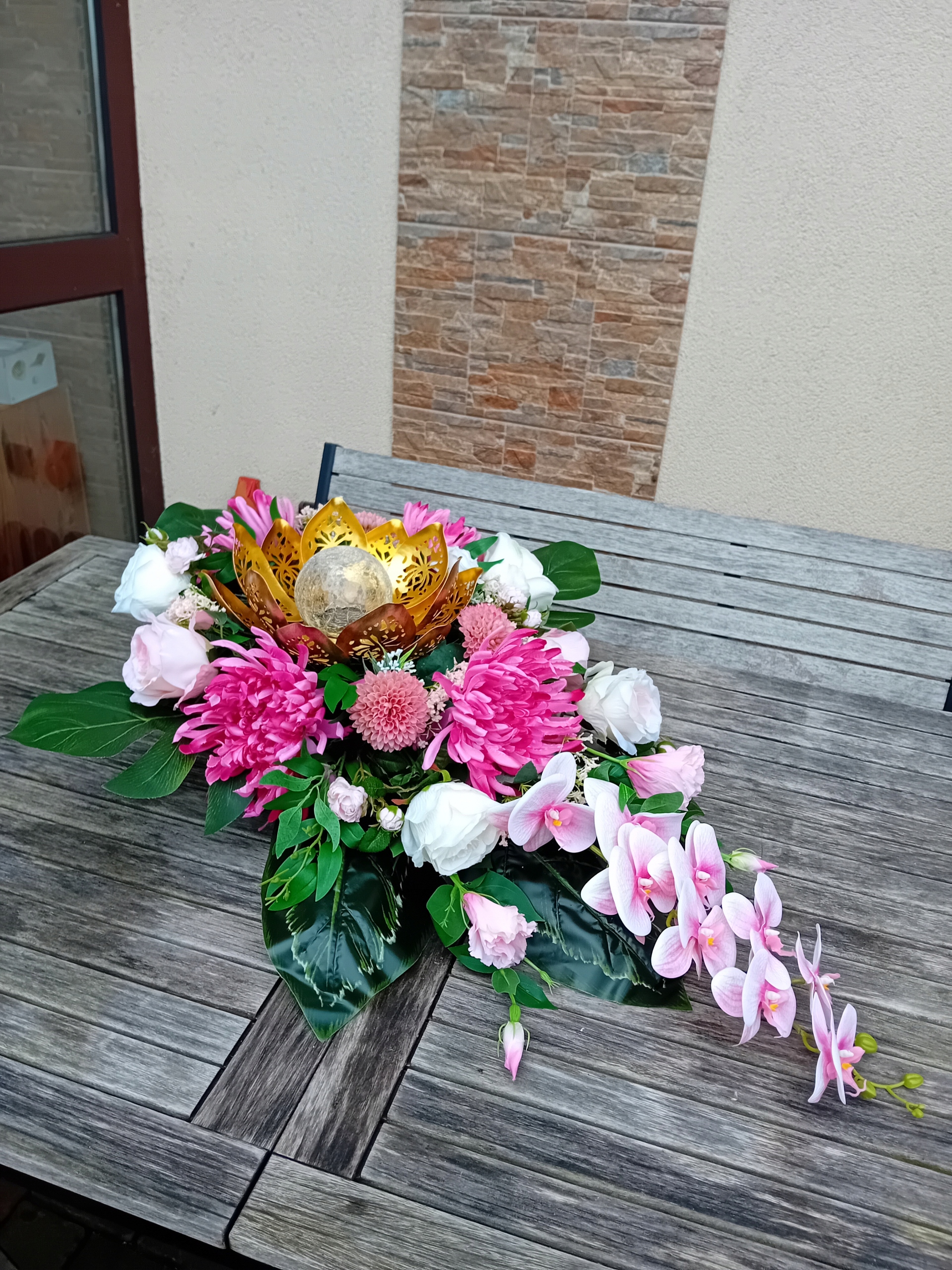 Могильна квіткова композиціябула ретельно створена, з дотриманням модних кольорів та дуже якісних матеріалів та штучних квітів. Кожна композиція унікальна - що робить її унікальною! Купуючи на наших аукціонах, ви купуєте готовий виріб з фото - без сюрпризів!