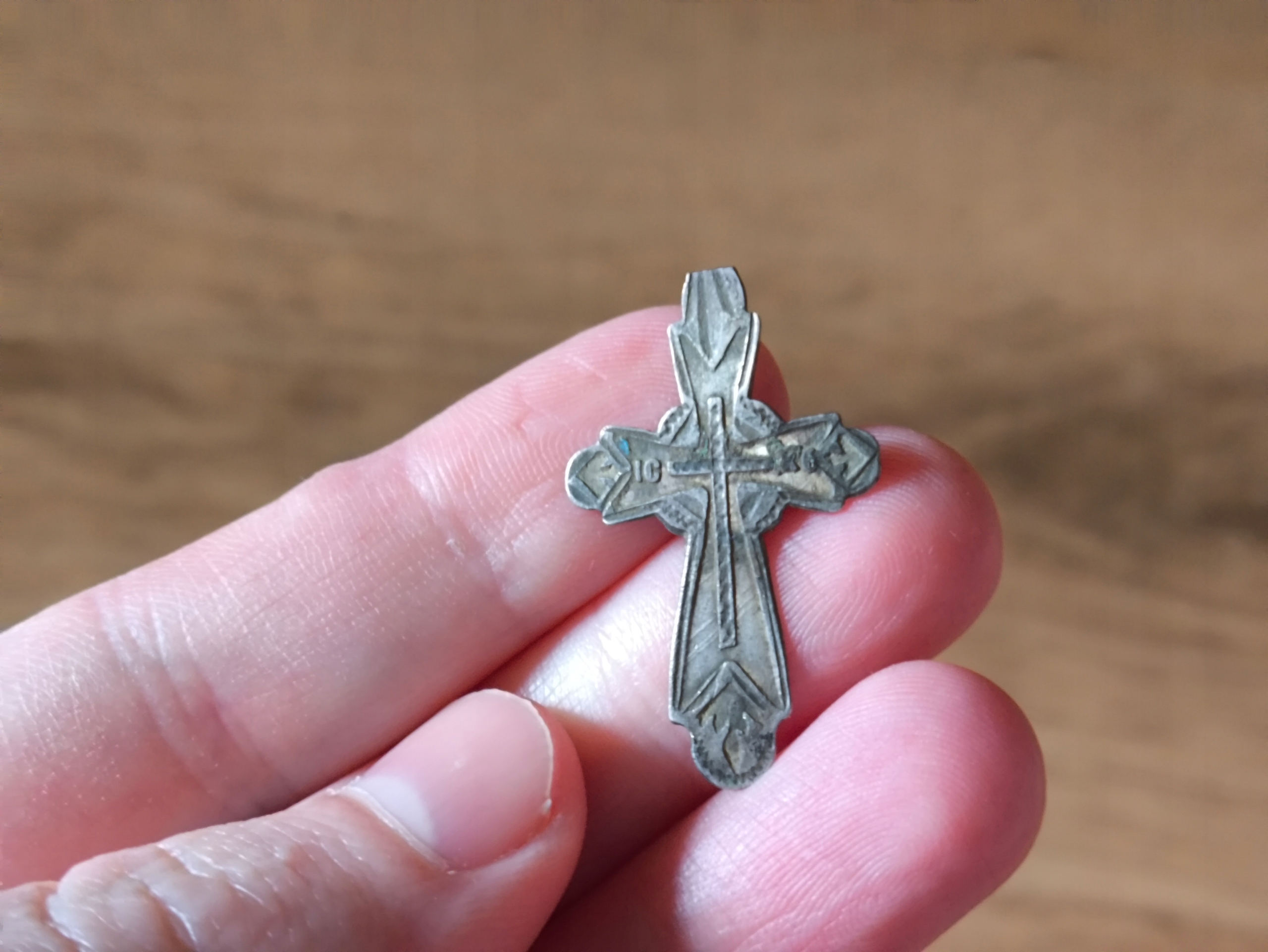 - Царістська Росія - гравірований хрест, зроблений із срібної спроби 84 - Кокосник Літо близько 1914 р.