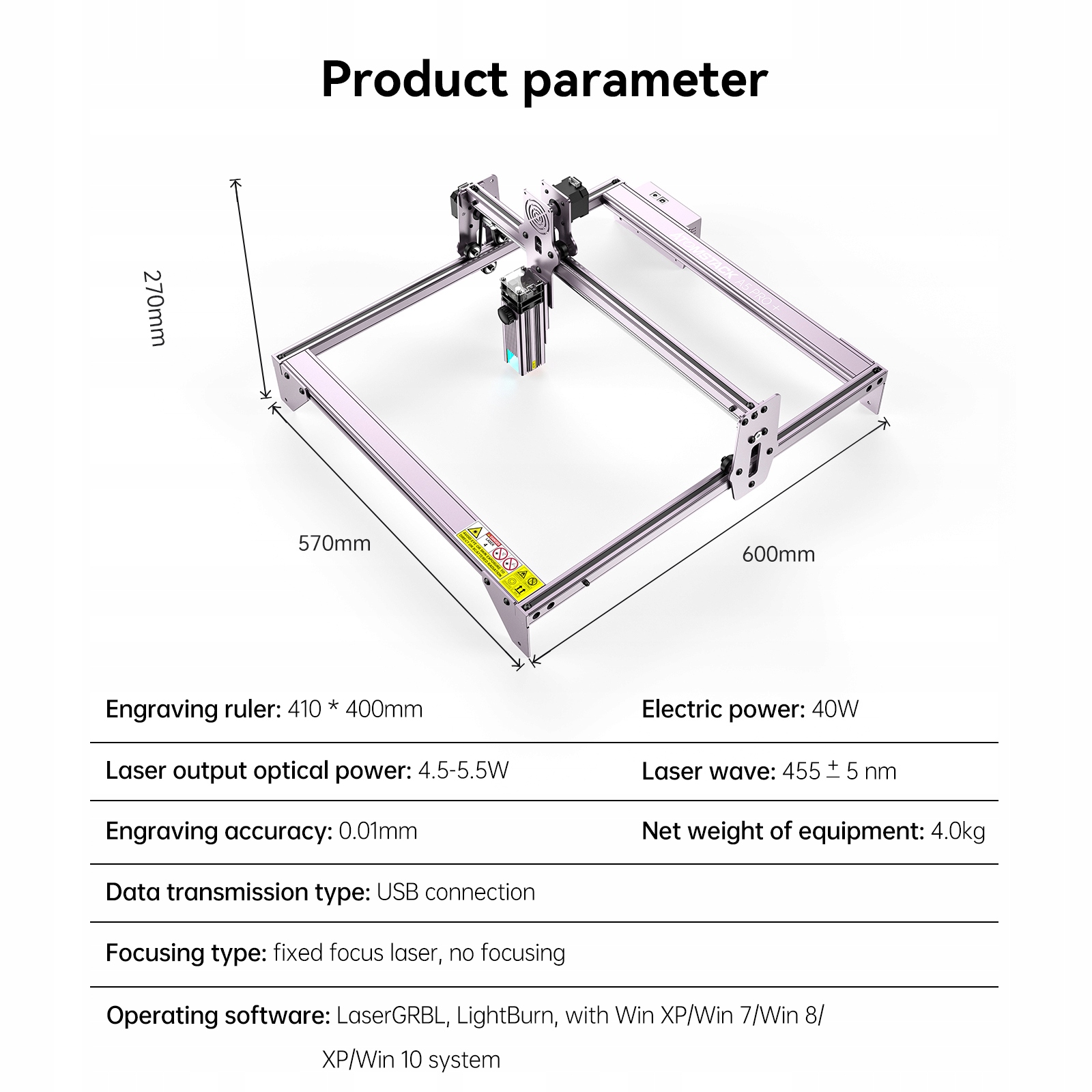 ✨Широка сумісність: машина сумісна з різноманітним програмним забезпеченням для гравіювання, таким як LaserGRBL, LightBurn, підтримує Win XP/Win 7/Win 8/XP/Win 10, а також підтримує систему Mac (LightBurn); Формат файлу гравіювання підтримує NC, BMP, JPG, PNG, DXF тощо.