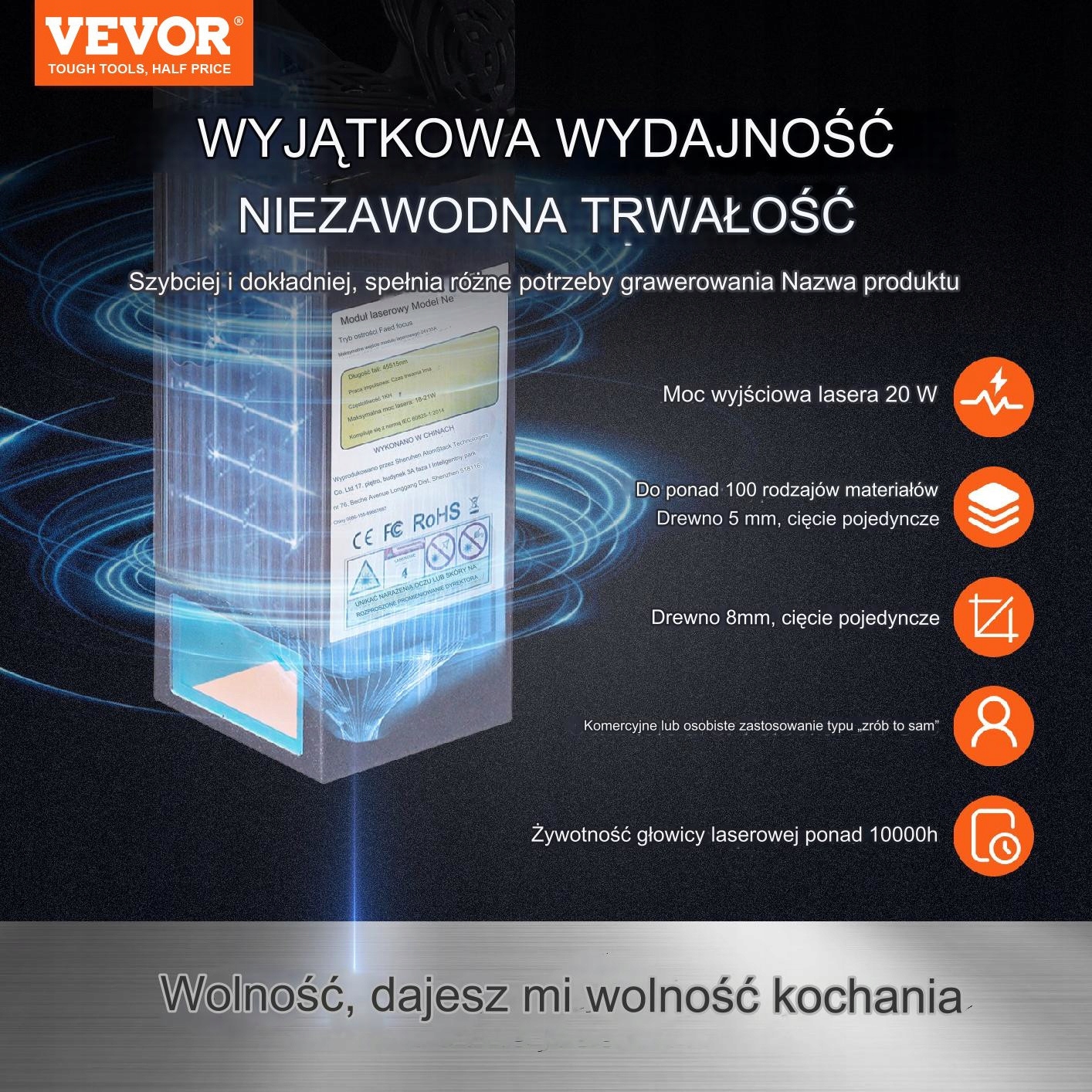 Лазерна вихідна потужність 20 Вт, що дозволяє різати різні матеріали, включаючи деревину до 8 мм. Життя лазерної голови перевищує 10 000 годин.