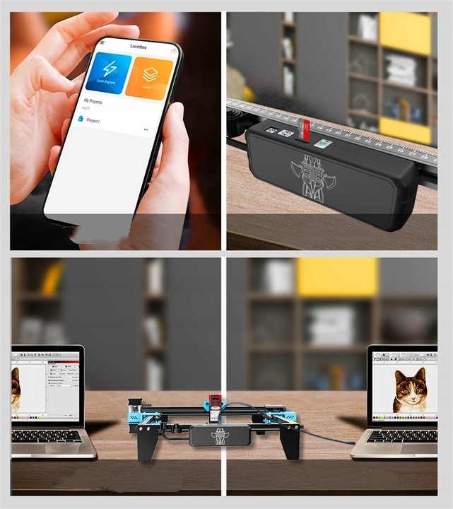Завдяки вдосконаленій, інтелектуальній системі ESP32, цей гравер досягає швидкості до 500 мм/с. Два крокові двигуни на осі Y забезпечують точне позиціонування та плавніші лінії. Інтегровані Wi-Fi та Bluetooth дозволяють легко керувати мобільним керуванням за допомогою підтримуваних програм. Відрегулюйте розташування машини, щоб отримати більш гладкі лінії гравірування.