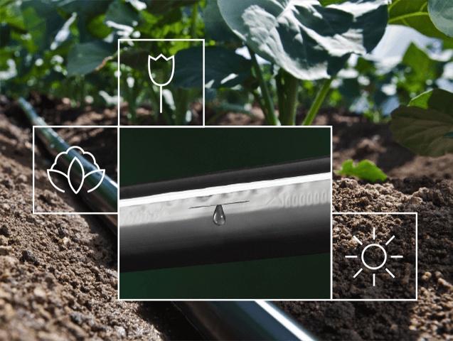 Застосування: лінія призначена для поливу таких культур, як: туї, чорниця, квасоля, агрус, чорноплідна горобина, перець, томати, смородина, ожина, капуста, картопля, самшити, живоплоти та всі інші рослини з розгалуженою кореневою системою.: капати через кожні 30 см.
