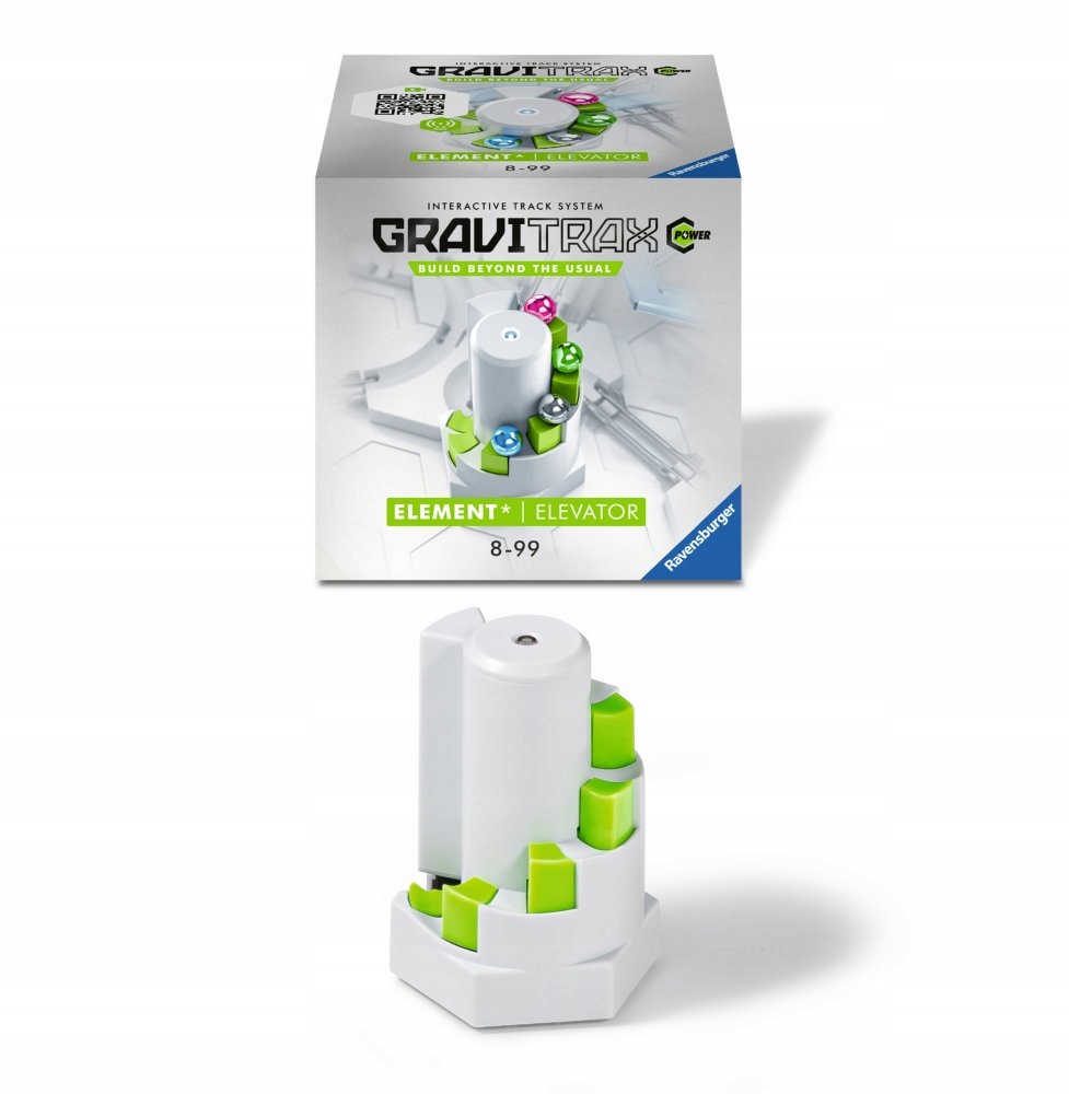 GraviTrax Power Elevator – це електронний компонент, який дозволяє переміщувати кульки на висоту до семи прокладок. Коли металева куля досягає ліфта, кроки гаджета активуються автоматично, транспортуючи кулю на наступний рівень.