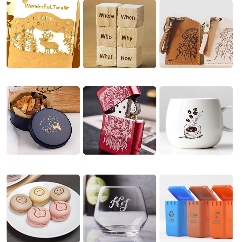 - Відповідні матеріали: дерево, папір, пластик, шкіра, бамбук, крафт-папір, пофарбований метал тощо. Можна різати папір, дерево, шкіру товщиною 0,2 мм .