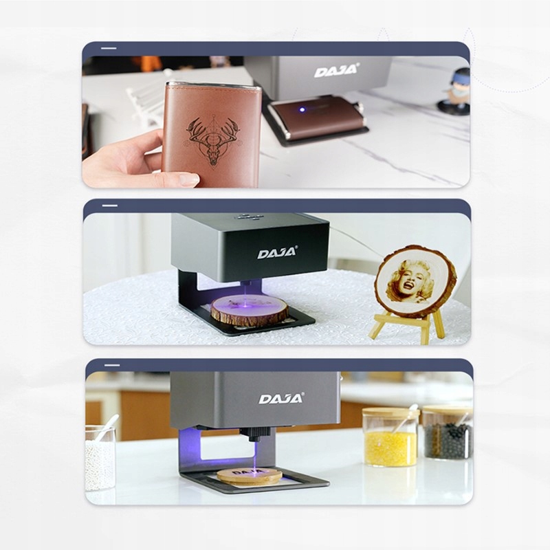 Ця гравірувальна машина є ідеальним інструментом як для початківців, так і для досвідчених творців. Використовуйте його для персоналізації подарунків, створення декоративних елементів, дизайну логотипів, фірмових продуктів і багато іншого. Отримайте повний контроль над своїми проектами за допомогою лазерного гравера з ЧПУ DAJA DIY DJ6.