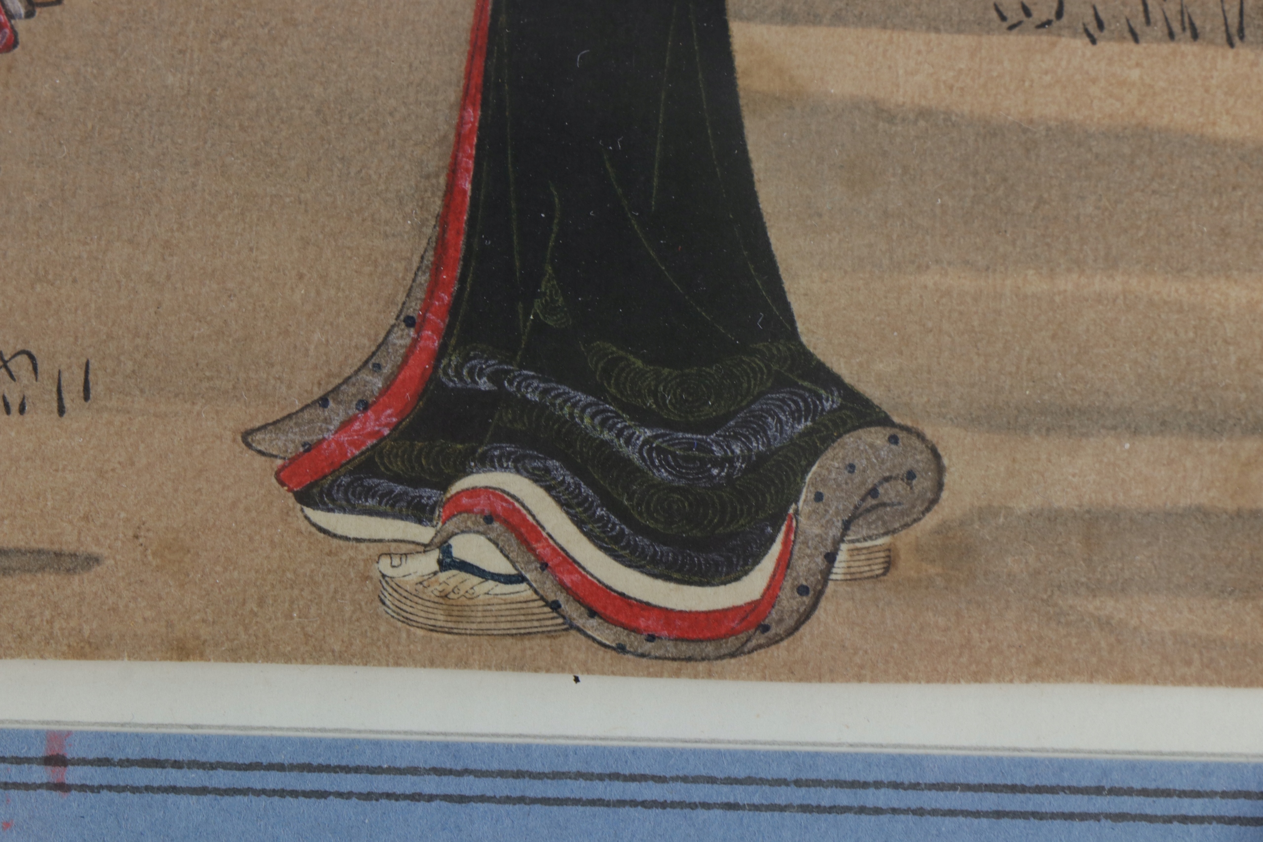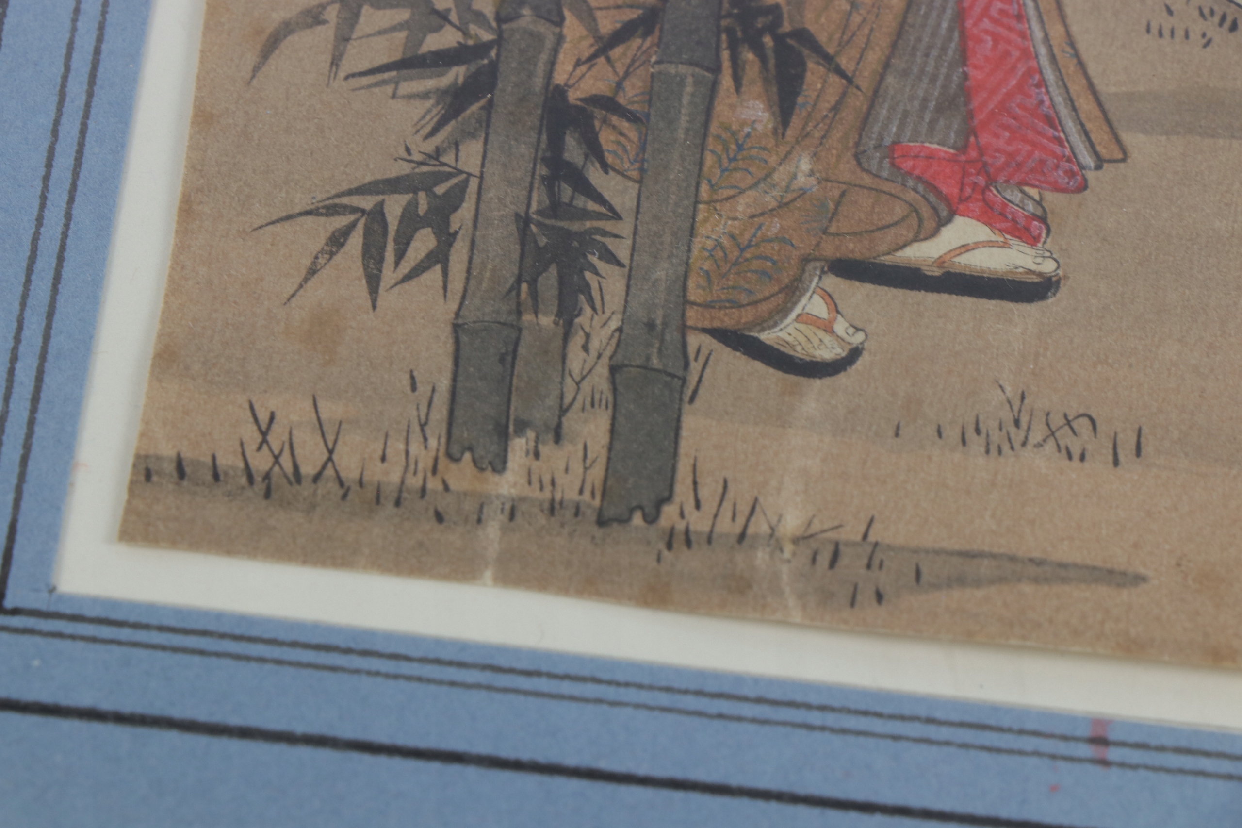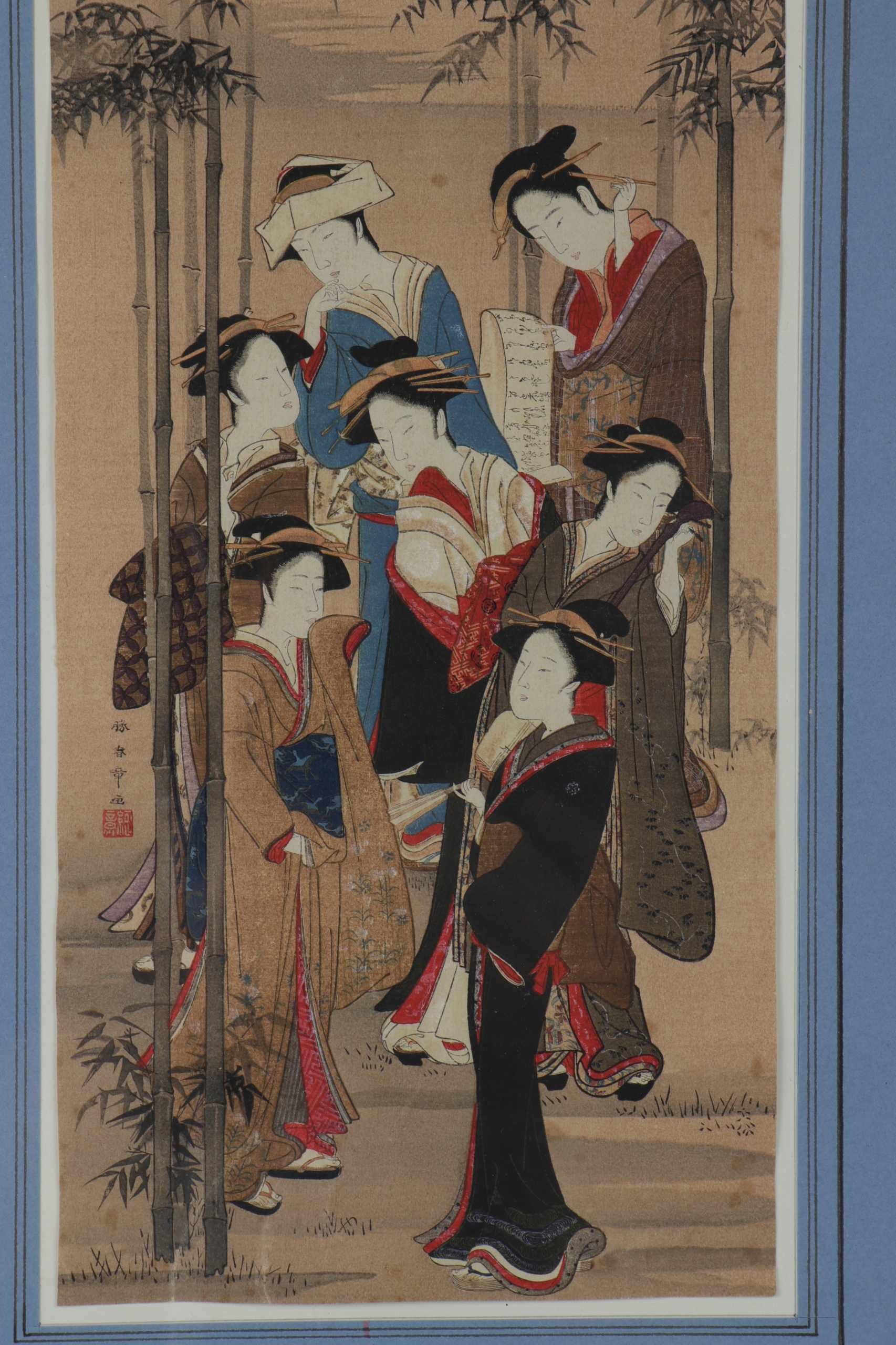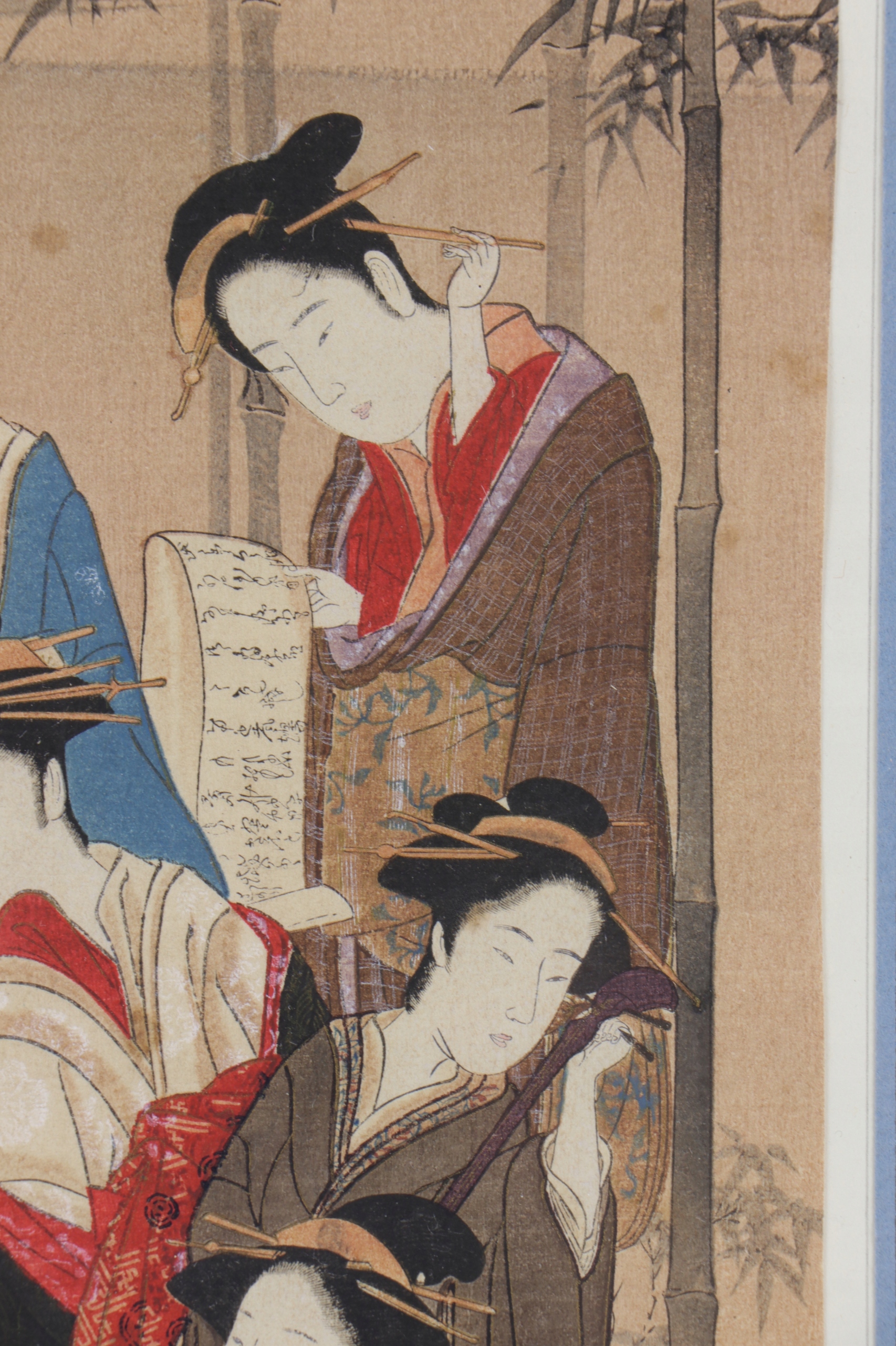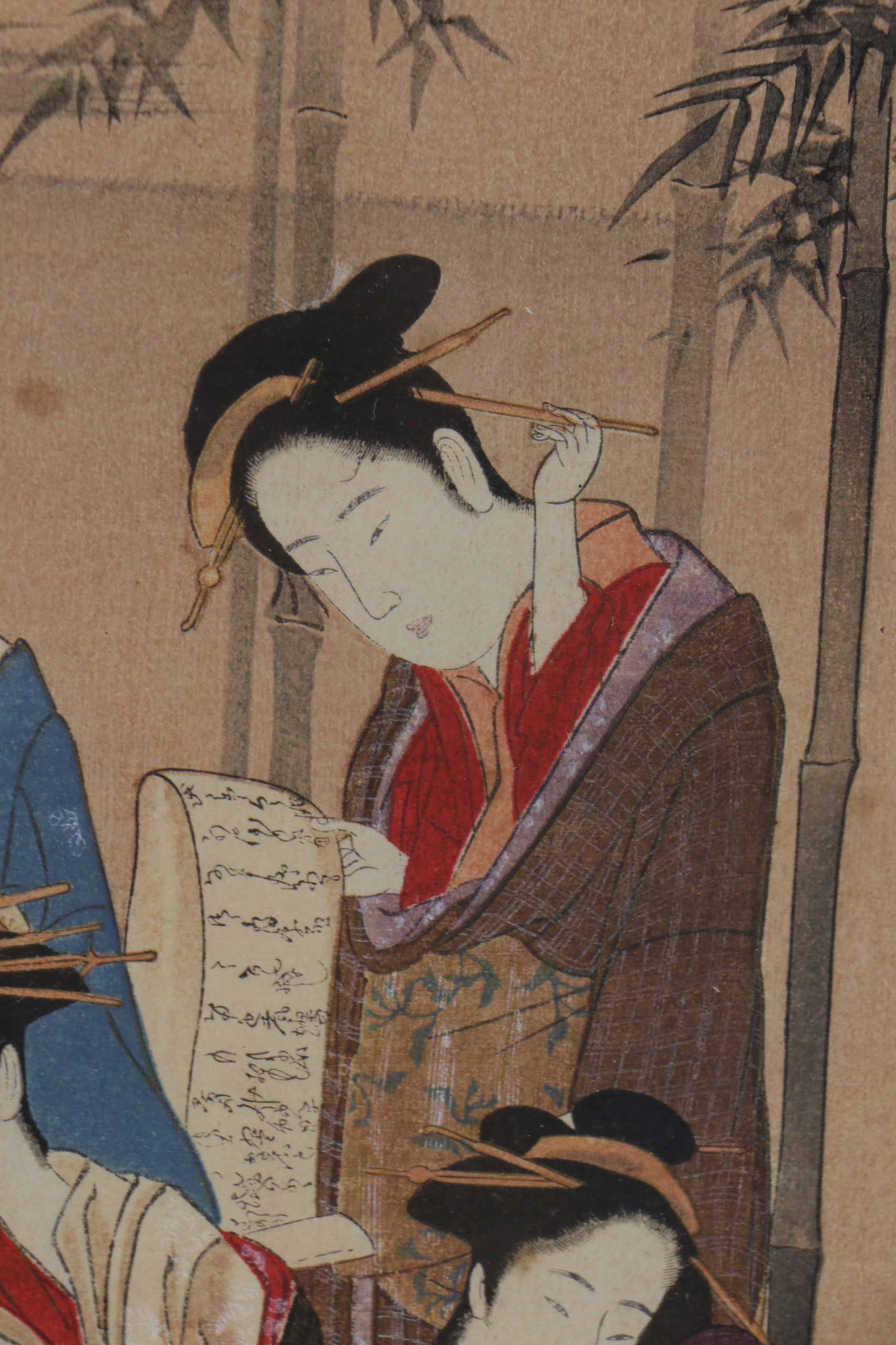 Японська ксилография «Сім красунь у бамбуковому гаю», графіка за мотивами твору Шунсьо КАЦУКАВА 1726 - 1792 b>приблизно 1890 р. Токійське видавництво Shimbi Shoin, що діяло з 1890 по 1938 р. Графіка в рамці.