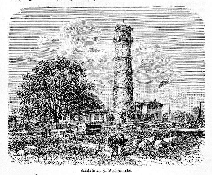 гравюра на дереві Любек - Leuchtturm zu Travemunde 1886