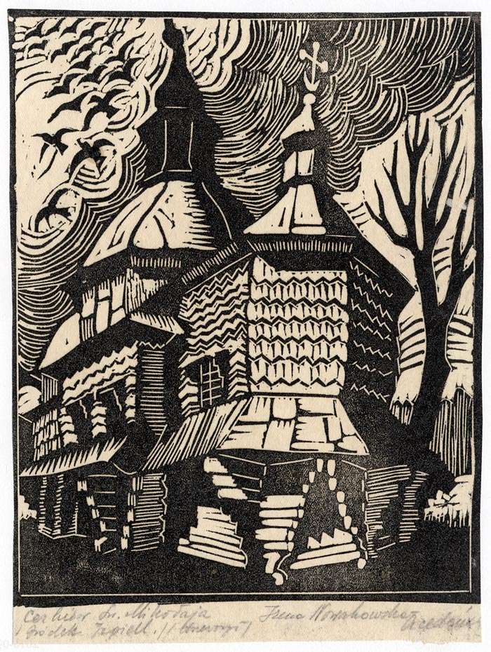 - Підпис: Гравюра підписана олівцем під композицією: «Cerkiew St. Nicholas /Gródek Jagiellon./ /дереворіз/ Ірена Новаковська -Acedańska" li>