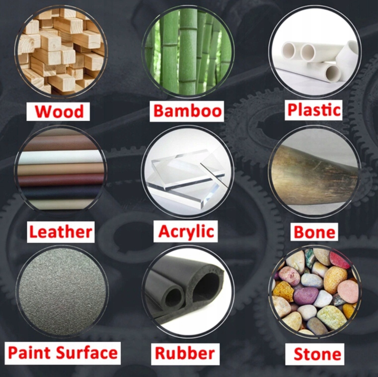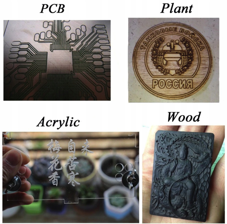 Для гравіювання: дерево, пластик, друкована плата, акрил, фанера тощо.