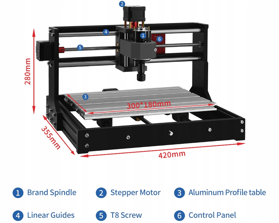 Гравірний верстат з ЧПК для любителів своїми руками був розроблений спеціально для самостійних ігор і навчання завдяки професійному керуючому програмному забезпеченню. Цей гравірувальний верстат з ЧПК має функції гравірування, різьблення та фрезерування. Ця машина для різьблення може гравірувати пластик, дерево, акрил, ПВХ, друковану плату або подібні матеріали. Свердлом не можна гравірувати твердий метал, нефрит або інші тверді матеріали. Невеликий і практичний, його без проблем можна використовувати на столі. Система управління має відкритий вихідний код (технологія управління системою доступна). Велика робоча зона 300 x 180 x 45 мм, програмне забезпечення управління: (включаючи тримач ER11). Машина є комплектом DIY, вам потрібно зібрати самостійно. Ви можете гравірувати матеріали: дерево, бамбук, папір, пластик, шкіру, гуму або інші легкозаймисті пластики (наприклад, корпус телефону, мишку, олівець, візитну картку, гаманець, пластиковий гребінець). Не можна гравірувати такі матеріали: метали, скло, камінь, кераміку, ювелірні вироби, срібло, світловідбиваючі, напівпрозорі та прозорі матеріали. Одягайте окуляри під час використання.