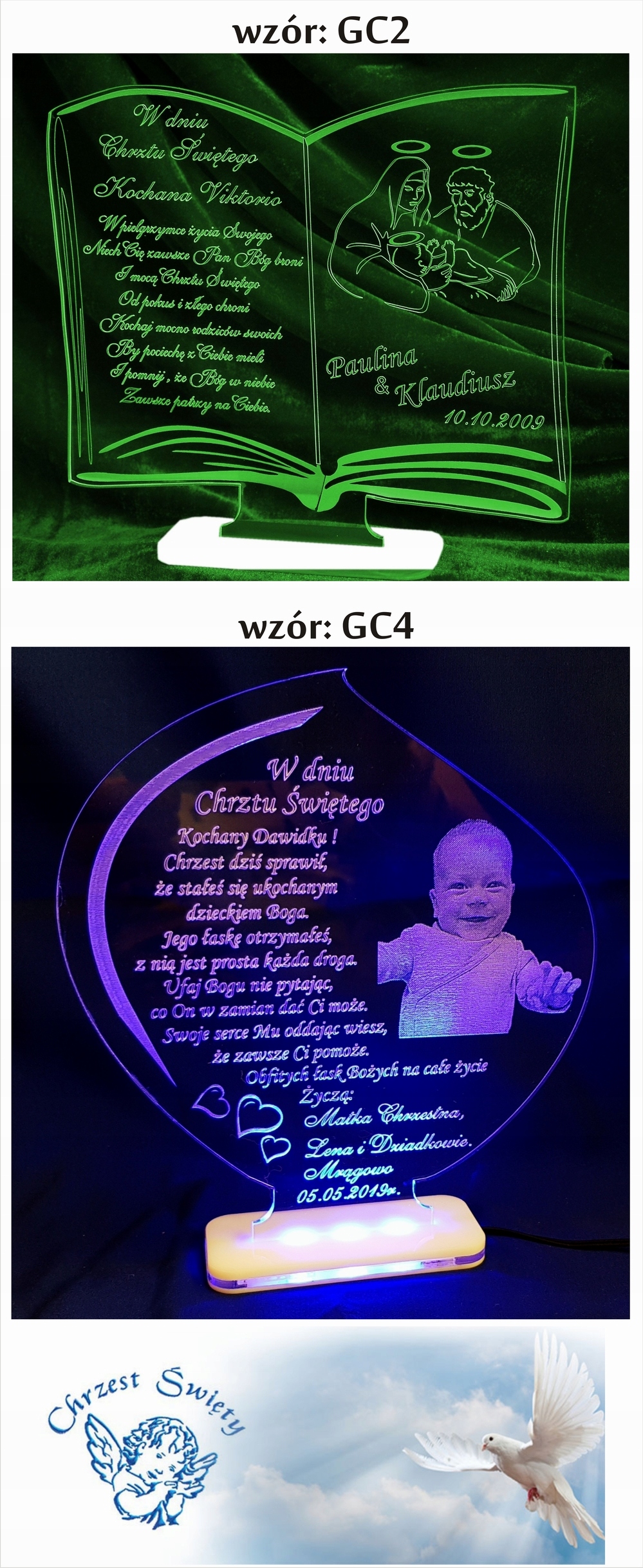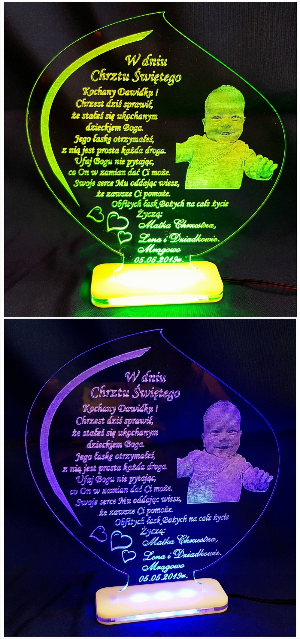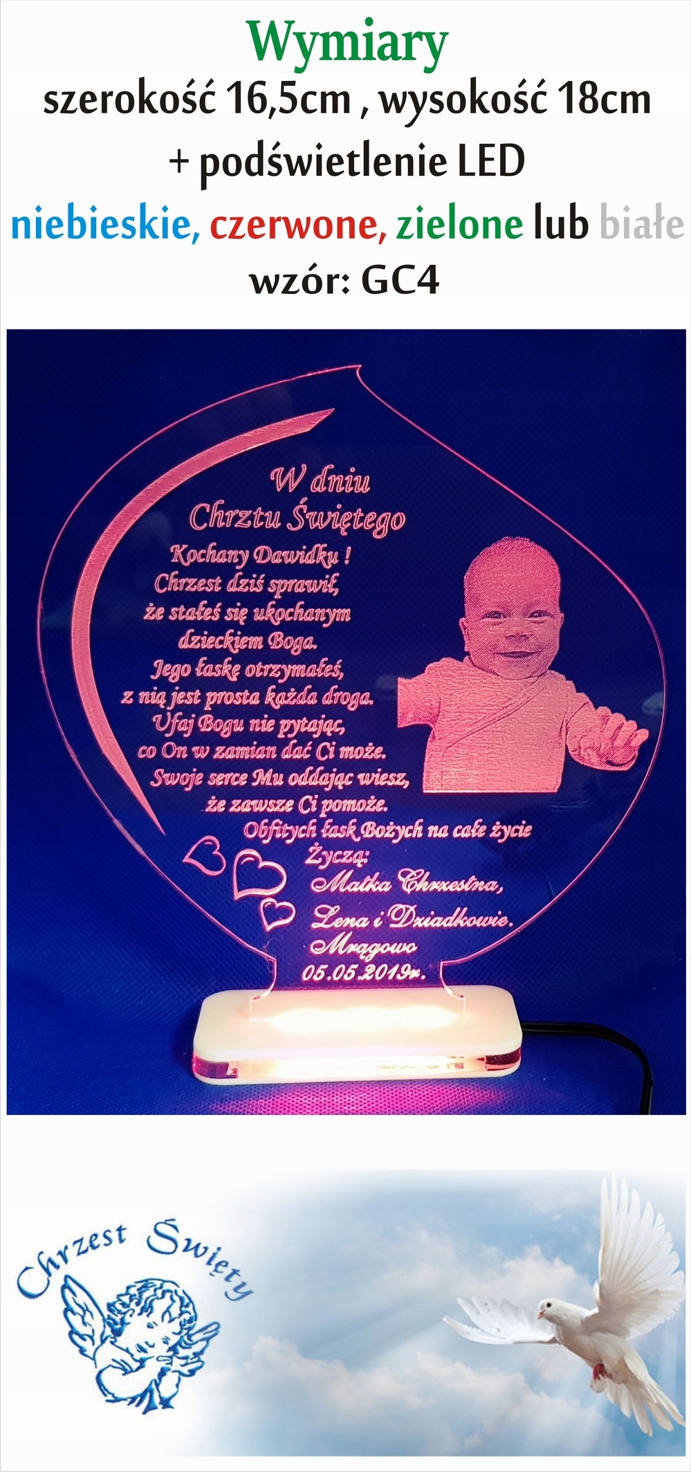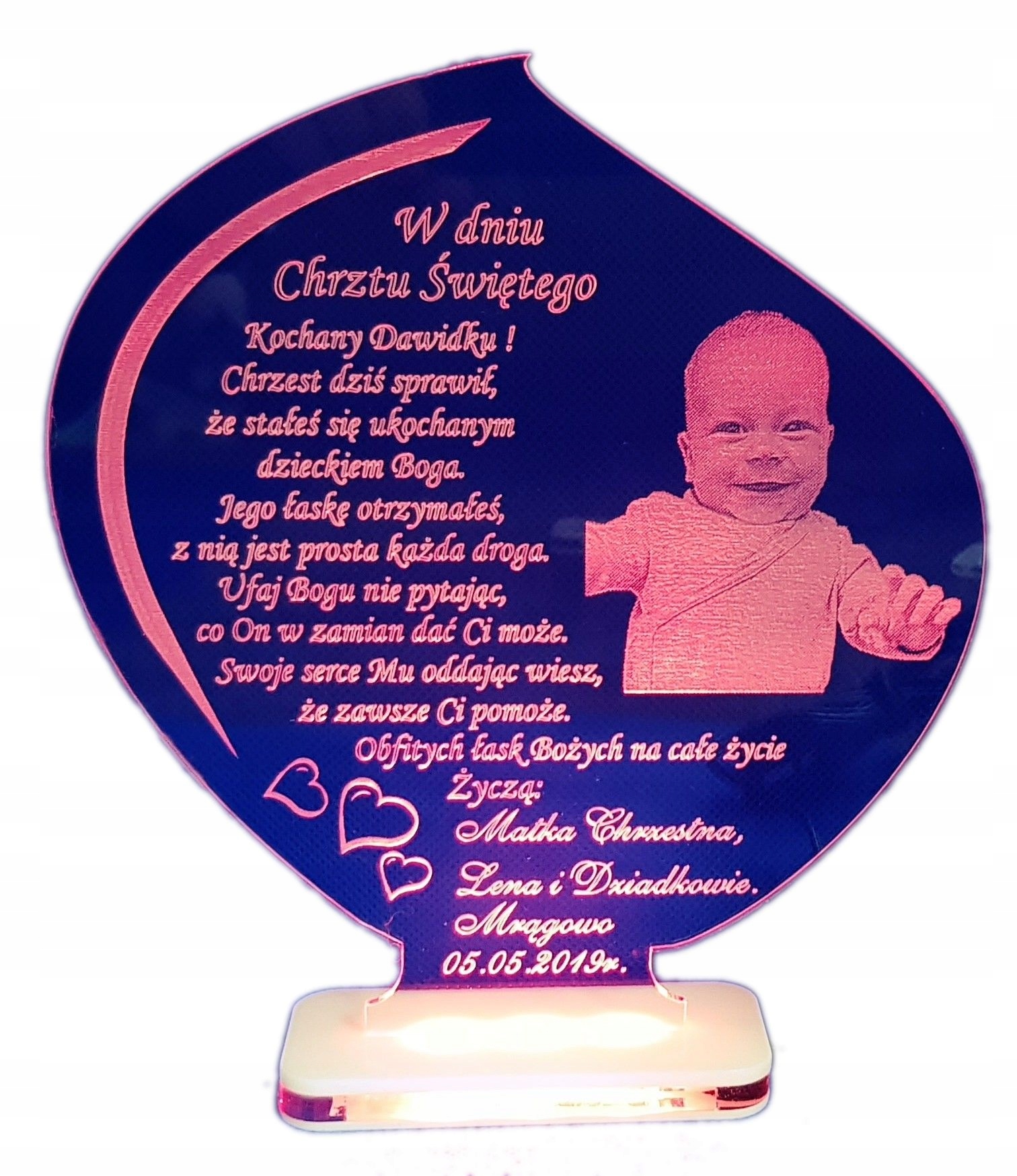 GRAWEROWANA PAMIĄTKA CHRZTU ŚW. LED Z FOTO CHRZEST