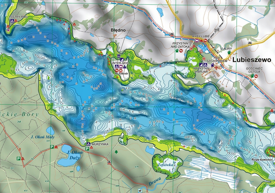 JEZIORO LUBIE + DRAWSKO POMORSKIE, ТУРИСТИЧНА КАРТА, 3D GPS БАТИМЕТРИЧНИЙ ПЛАН