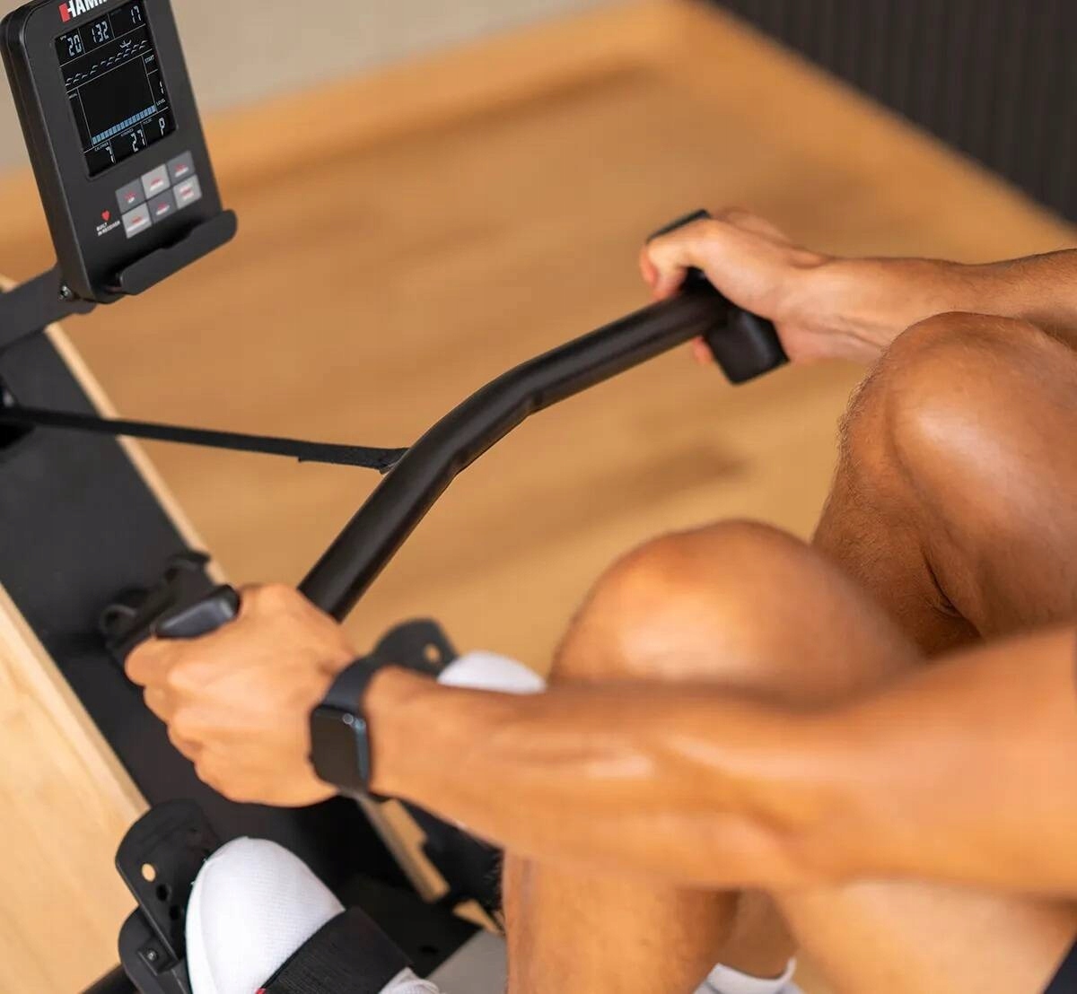 Ергономічна ручка для веслування дозволяє змінювати хват за вашим бажанням. Незалежно від того, веслуєте ви широко чи вузько, у вас завжди є вибір! Широке веслування активізує м’язи спини і плечей, а вузьке – інтенсивне навантаження на трапецієподібні м’язи і плечі. Індивідуальне положення ручки дозволяє стимулювати різні групи м'язів. Незалежно від того, чи ваша мета – набрати силу чи загальну фізичну форму.