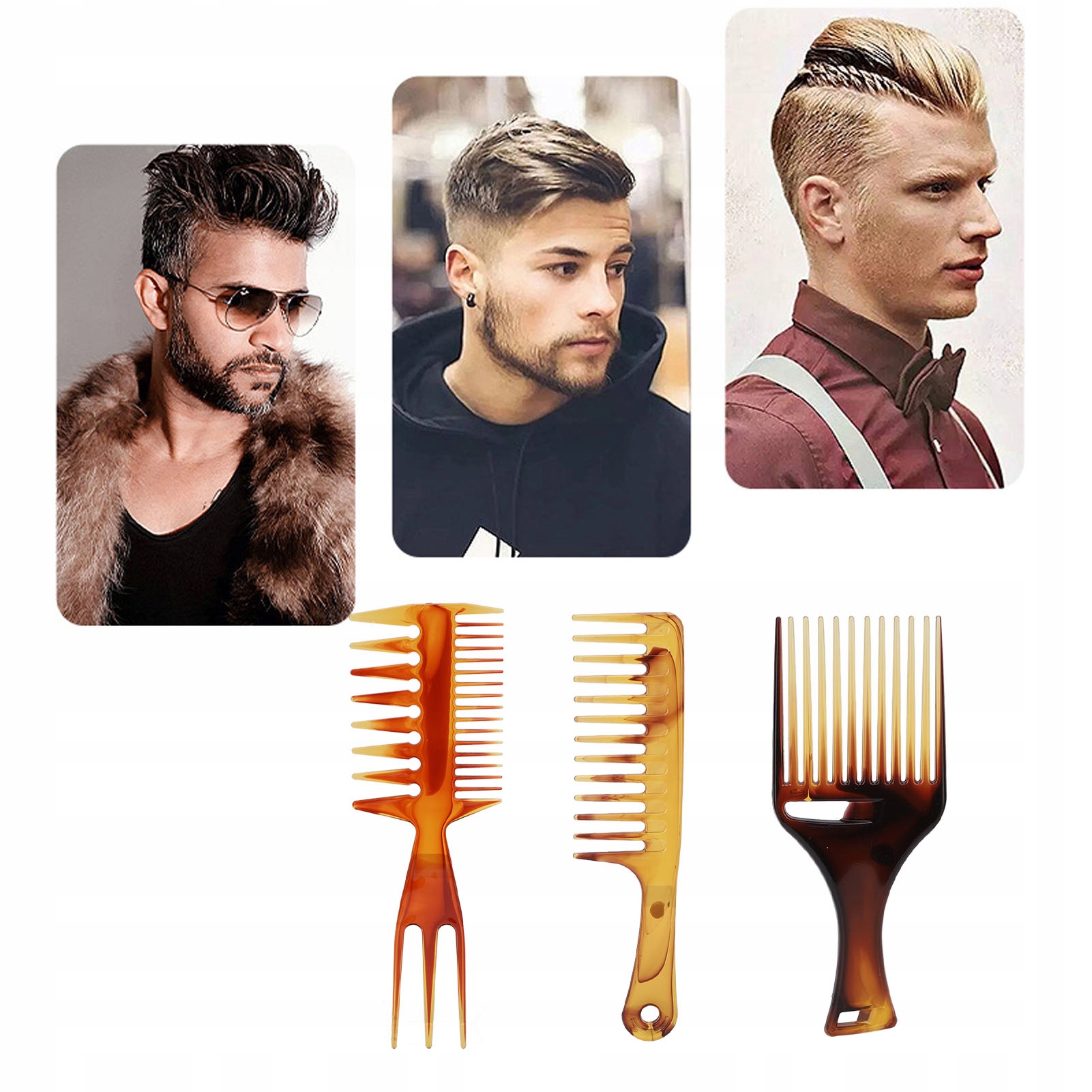 3 、 набір гребінців волосся: 3 типи гребінців для волосся доступні, допомагають створити масляну головку, слизьке волосся ззаду та багато інших зачісок, задовольнити різні потреби в полі волосся.