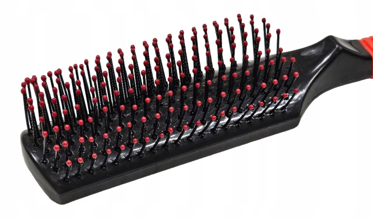 Пластикова щітка для щоденного догляду за волоссям з антистатичними нейлоновими голками та кульками з ПВХ. Ручка ідеально сформована за формою руки, покрита антиковзаючою гумою. Ідеально підходить для щоденного догляду за волоссям.