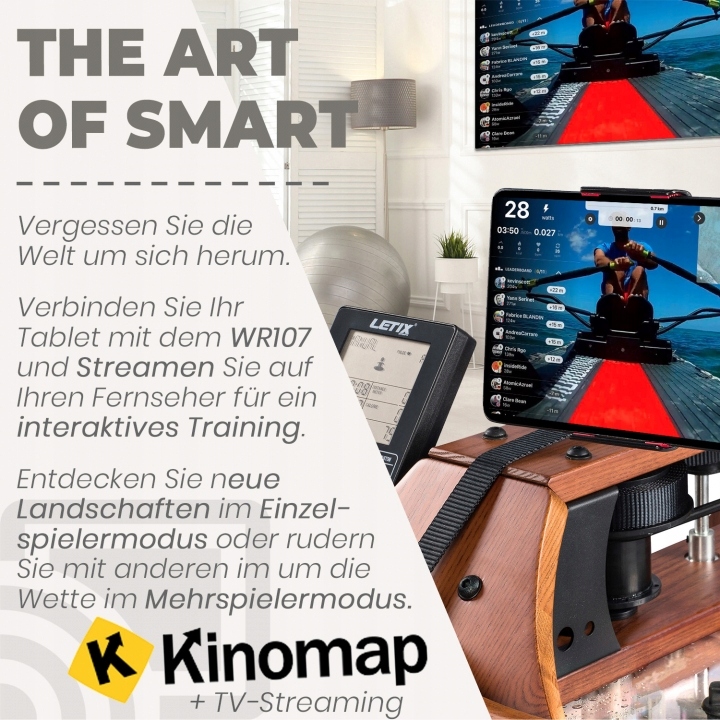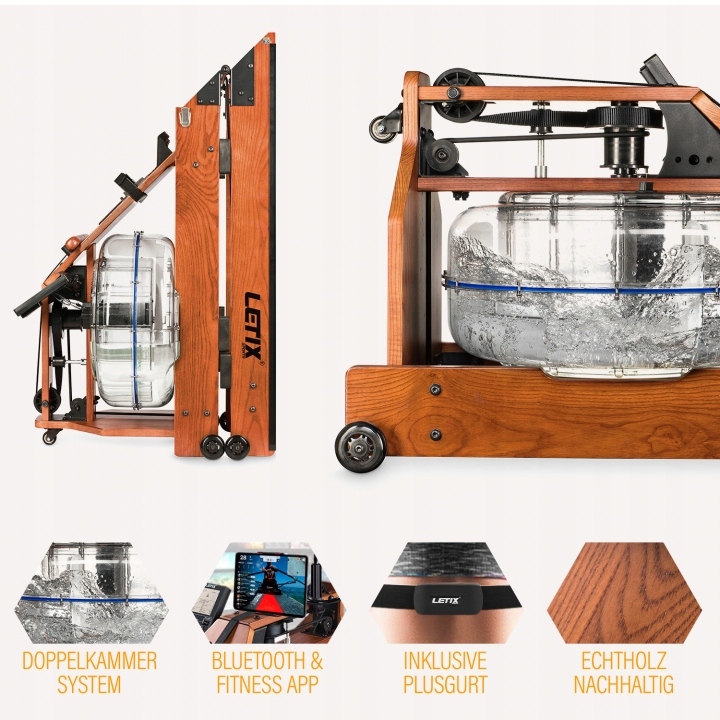 Відчуйте абсолютно природне відчуття веслування у власному домі та на тренуванні понад 80% м’язів тіла лише з одним обладнанням. «AquaRower» WR107 поєднує в собі елегантний дизайн з інноваційними функціями. Унікальна водонепроникна система забезпечує плавний і плавний рух. Завдяки інтегрованій двокамерній системі та 4-ступінчастому контролеру опору тепер ви можете тренуватися ще ефективніше. Включений пояс для вимірювання пульсу передає дані в режимі реального часу на тренувальний комп’ютер. Пристрій можна легко підключити до планшета чи телевізора через Bluetooth і веслувати з людьми по всьому світу.