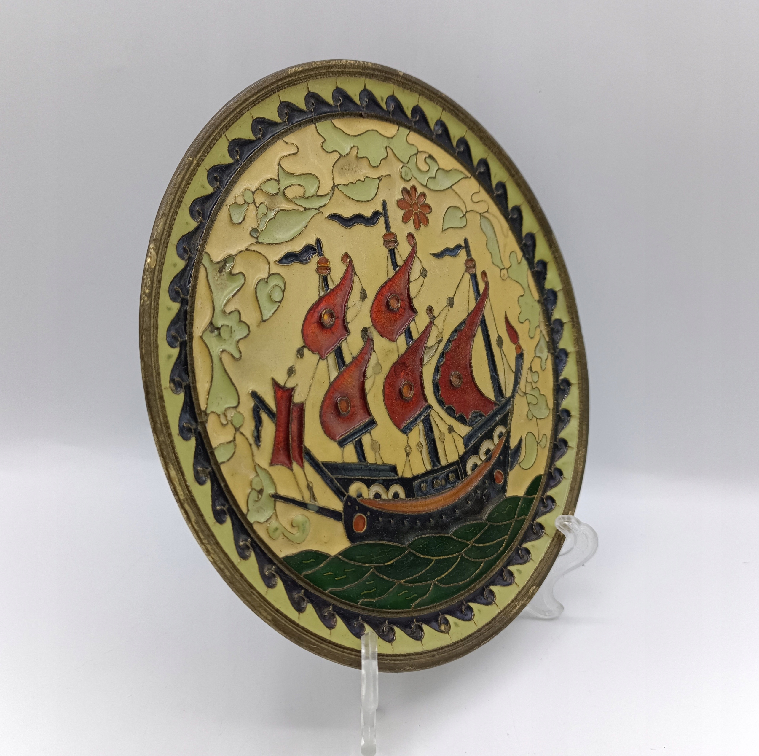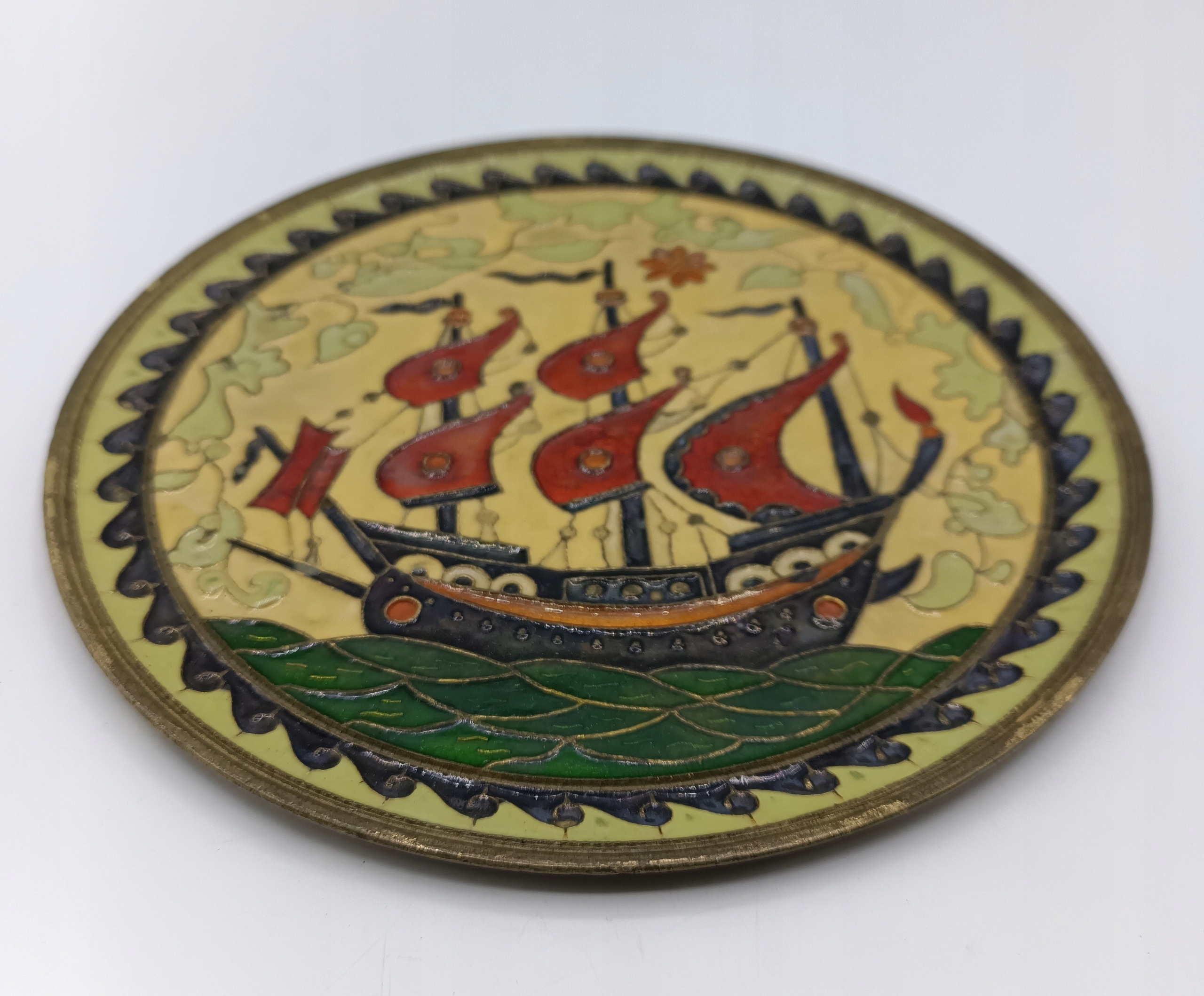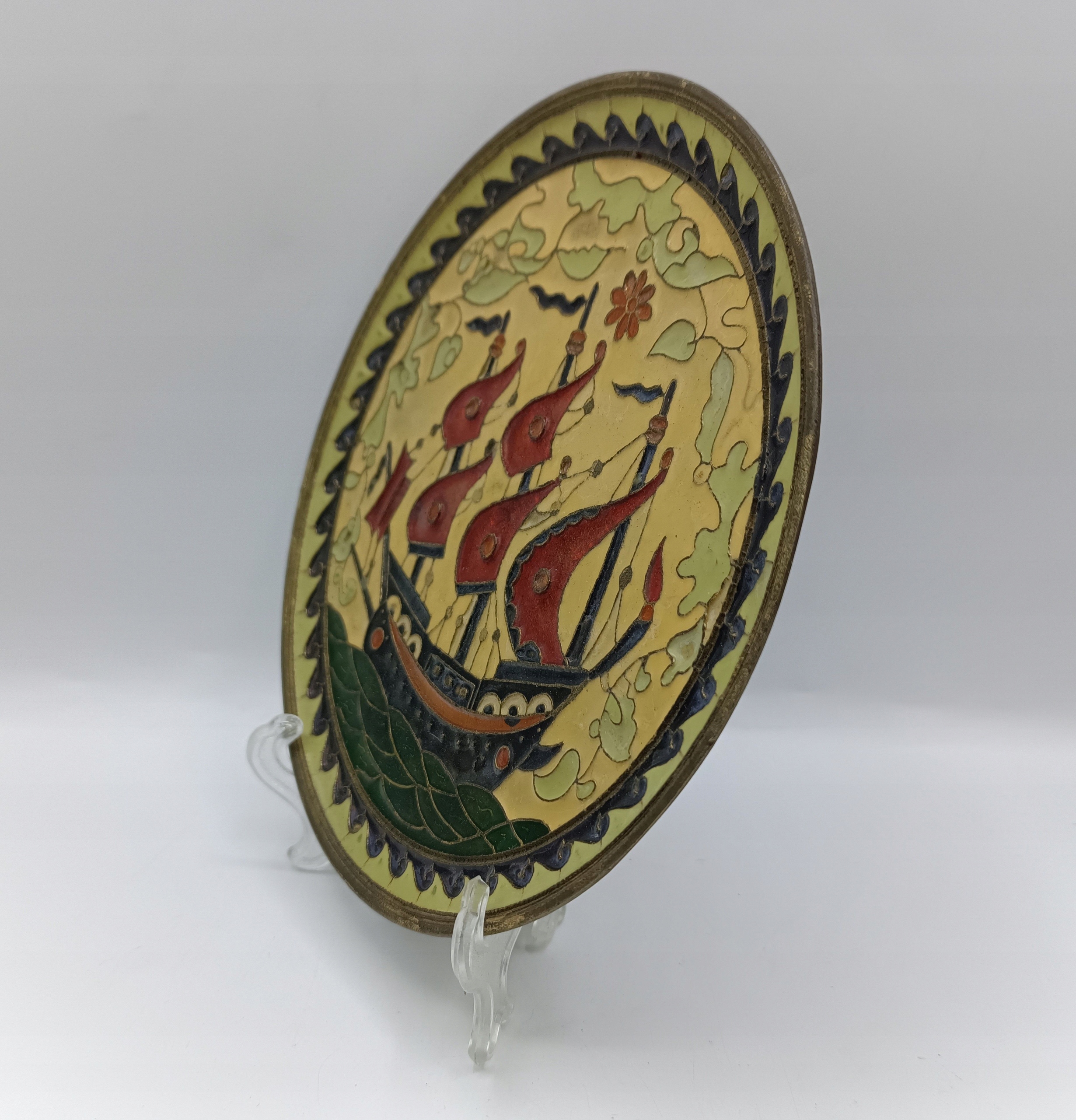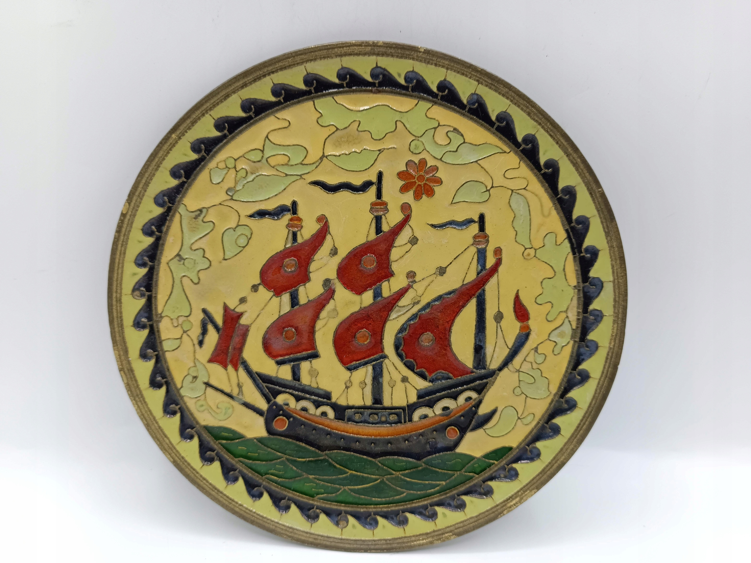 тарілка, виготовлена з латуні - пофарбований в руку клітинку - твердий, це не якийсь тонкий лоток для випічки! - Підписано - Колекціонер - декоративна - дуже приємно - його можна повісити на стіні -