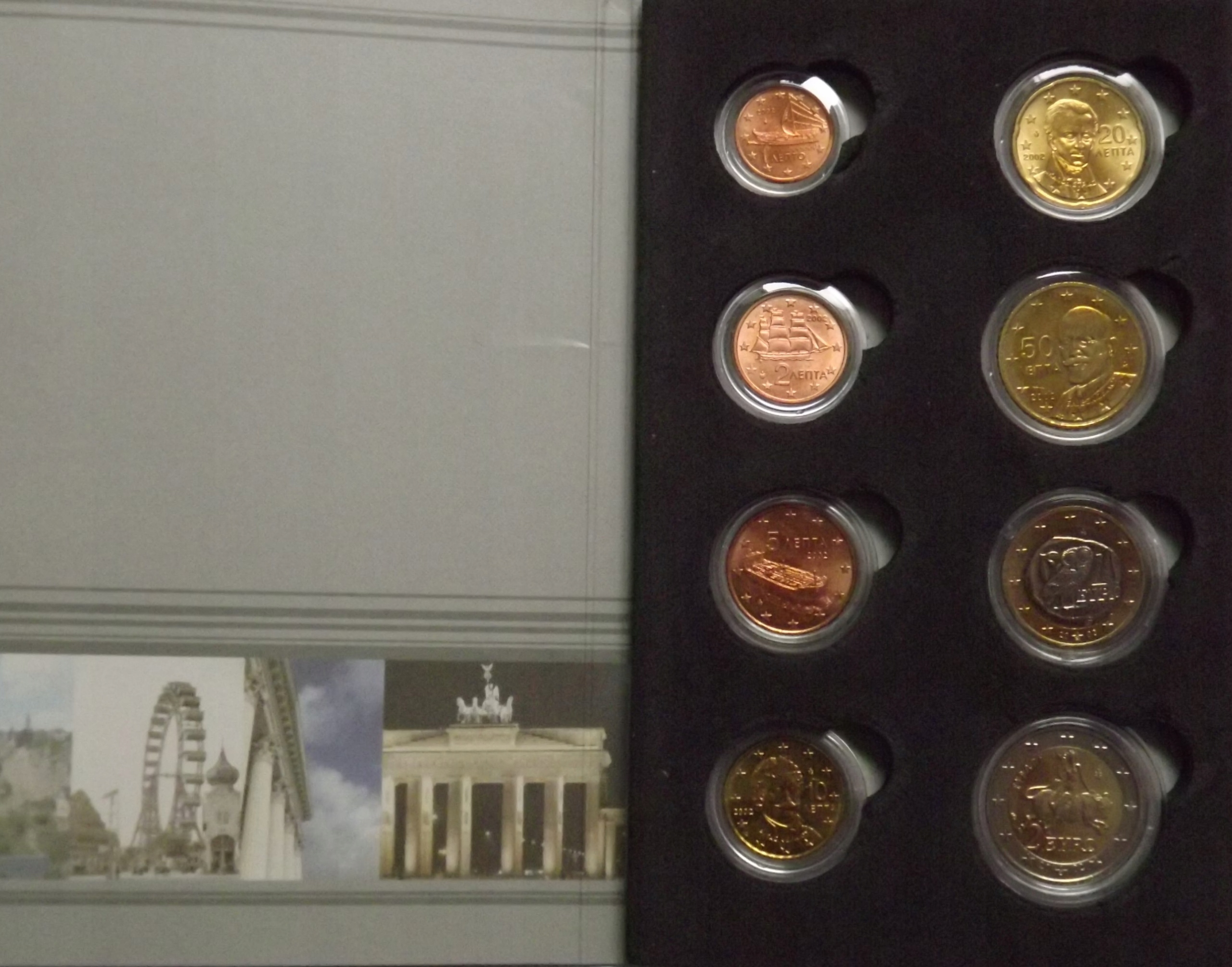 Греція 2002 EFS Set Євро 2 і €1 л. S , 20c освітлений. E,1,2,5,10 і 50c освітлені. Ф