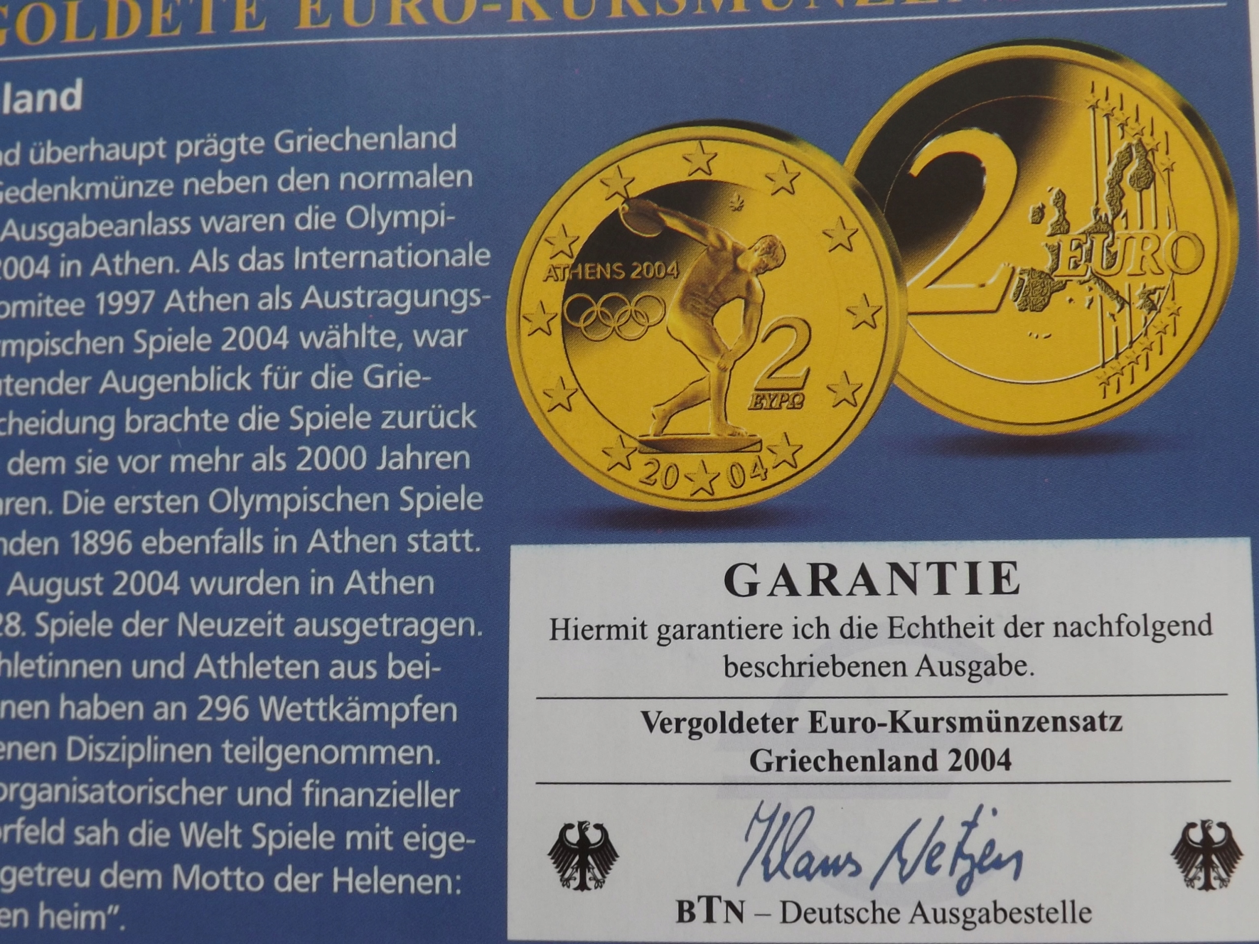 Греція 2004 Набір монет Євро, позолота 24 карата, 8 x UNC, 2 € DISCOBOL