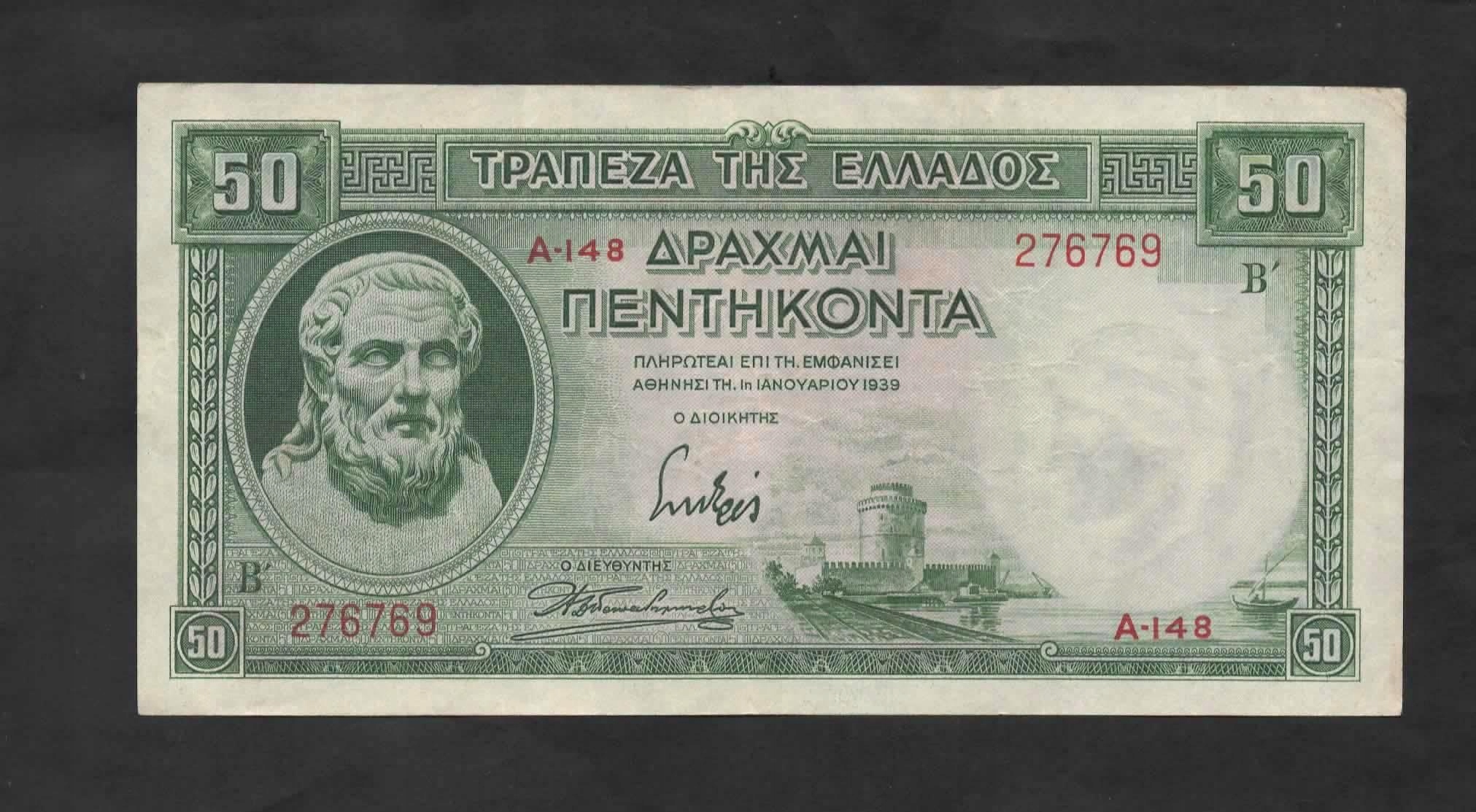 Греція банкнота - 50 драхм - 1939
