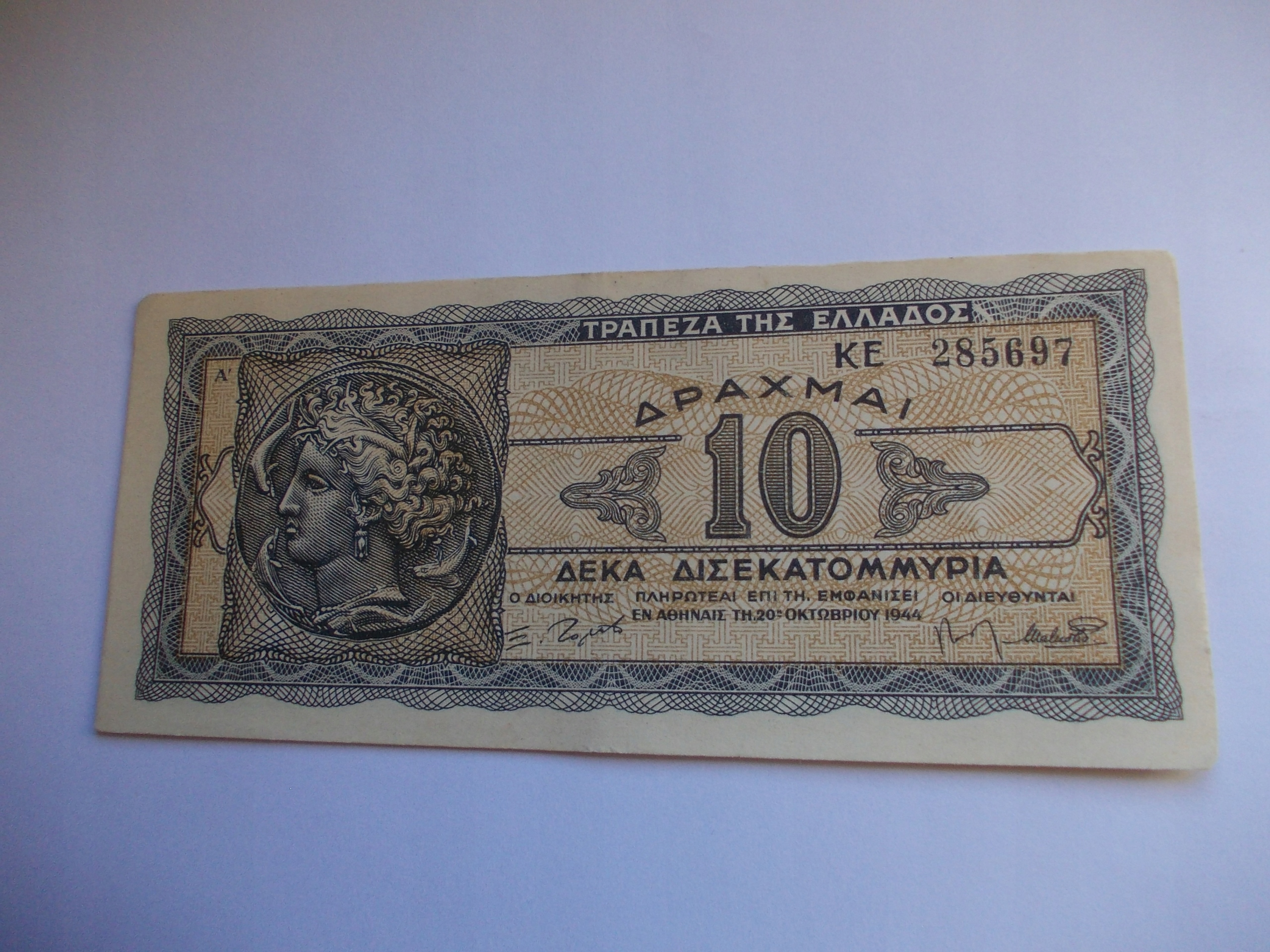 GRECJA 10 DRACHMAI 1944