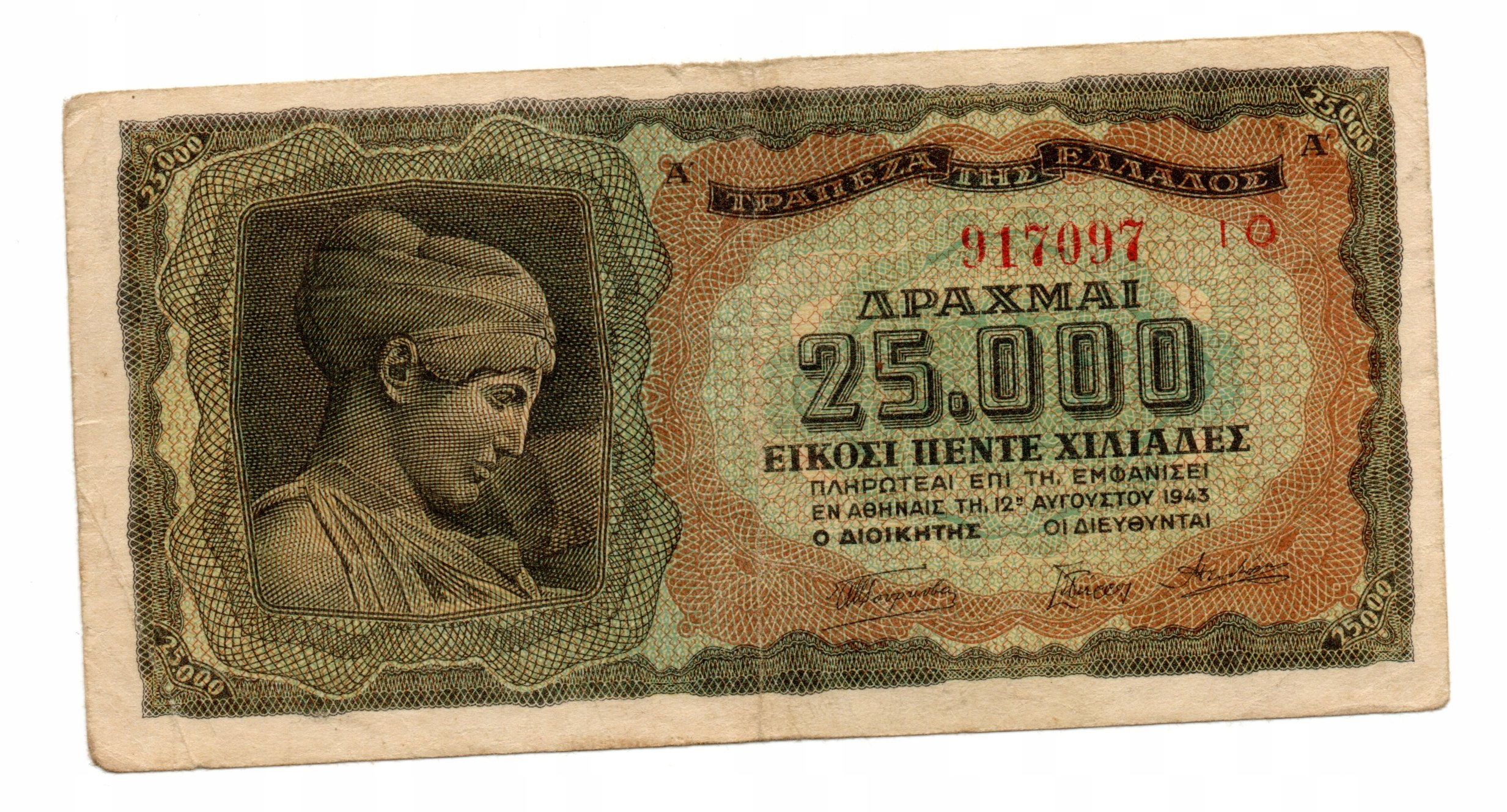 Grecja.Grecki banknot 25.000 drachm 1943