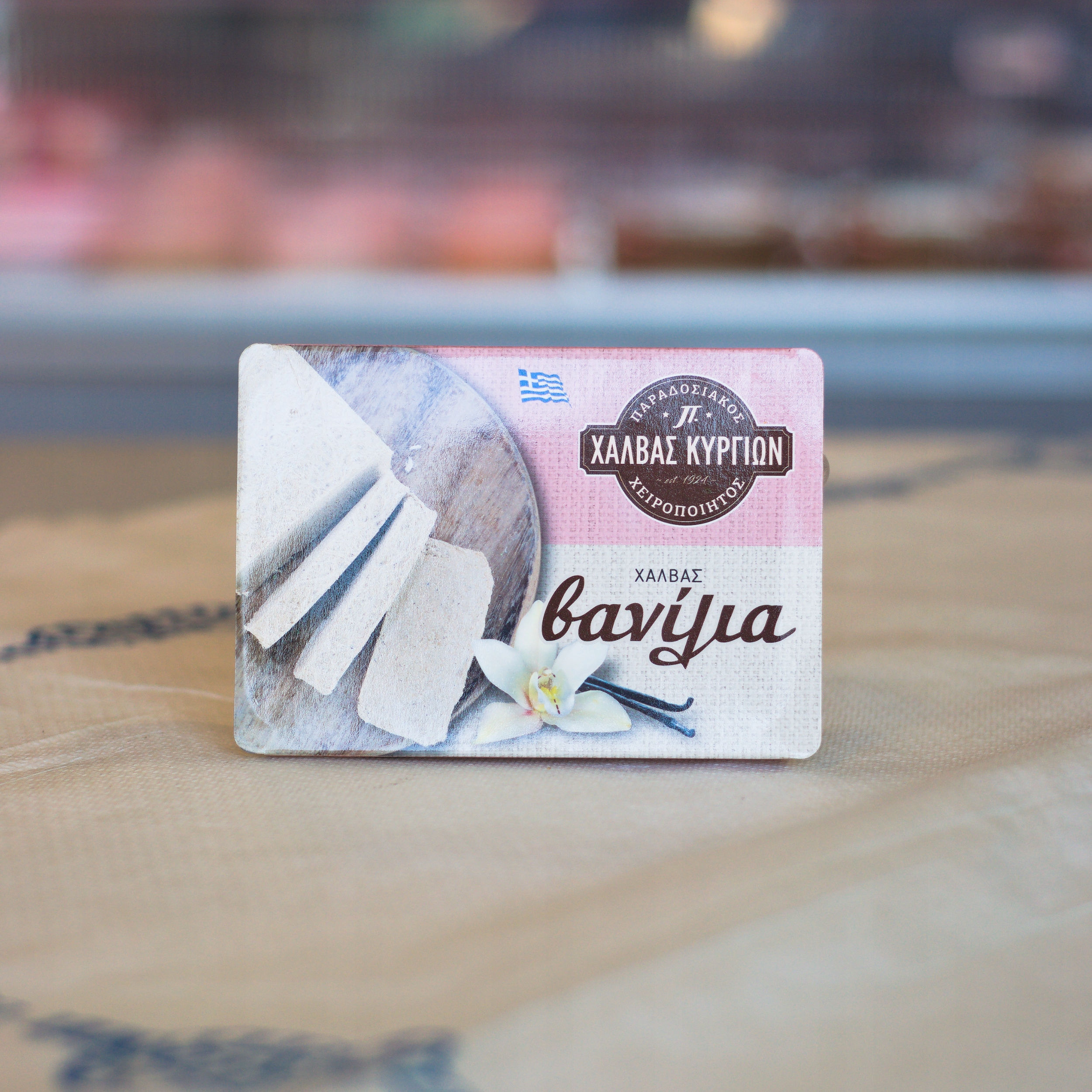 ванілла Халва Халвас Кіргіон -традиційний, виготовлений ручним десертом з кунжутними та натуральними інгредієнтами , який гостей на грецьких столах роками. Завдяки тонкому ванільному аромату та характерній структурі, що тане в роті, це ідеальний вибір для кожного випадку.