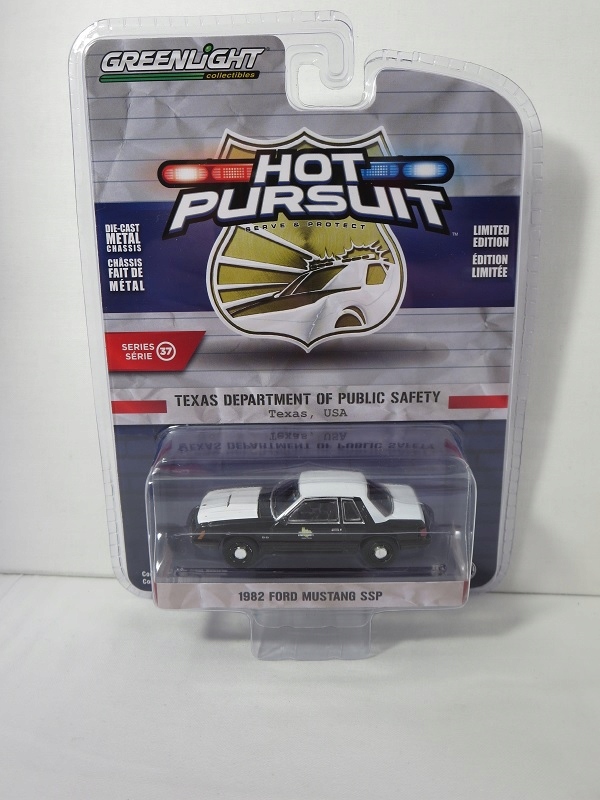 Модель Ford Mustang SSP 1982 Техаського департаменту громадської безпеки від Greenlight у масштабі 1:64, серія Hot Pursuit 37. Новинка
