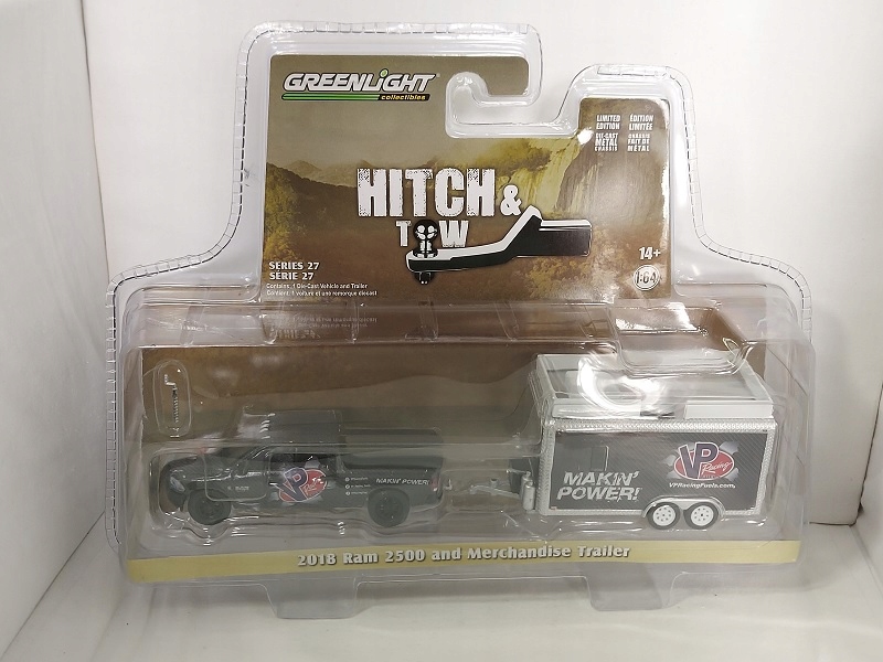 Модель Ram 2500 2018 року та товарний причіп VP Racing від Greenlight у масштабі 1:64, серія Hitch and Tow 27. Новинка