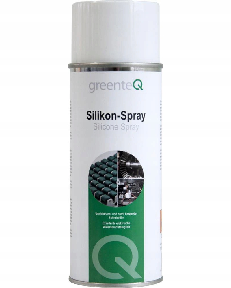 Силікон greenteQ змащується, не залишаючи плям, непомітний і захищає електричні контакти від вологи. Зберігає гумові елементи. Завдяки цьому вони зберігають свою гнучкість, не замерзають і не злипаються. Силіконовий спрей greenteQ надає пластиковим елементам блиск і запобігає втраті еластичності. Використання цього продукту також покращує властивості рухомих елементів машини. Його можна використовувати для ремонту заклинених і скриплячих елементів. Це також чудовий роздільний агент для лиття у форми та лиття під тиском. Його також можна використовувати як допоміжний засіб для монтажу з’єднань шлангів.